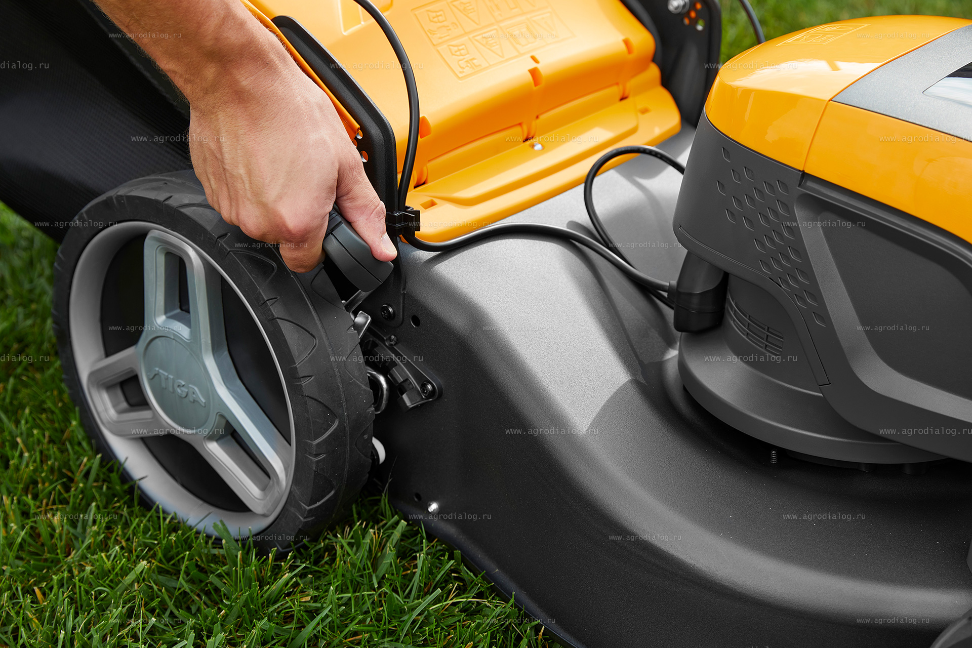 - Быстрая и легкая регулировка высоты стрижки травы. Одна легкодоступная эргономичная ручка позволяет регулировать высоту всей режущей деки и заменяет собой индивидуальные рычаги для каждой оси или каждого колеса. Предусмотрена возможность выбора из 6 значений высоты в диапазоне от 22 до 80 мм.