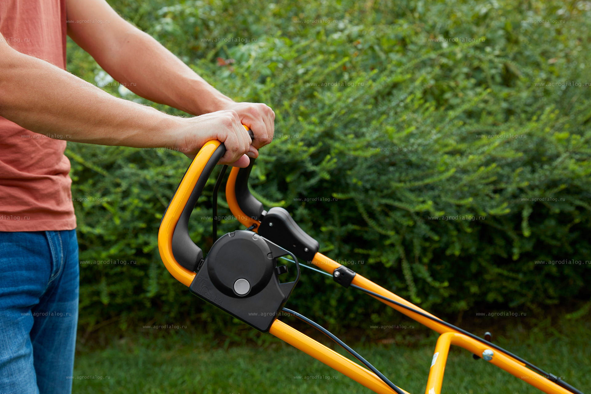 - Задний выброс без травосборника удобен при скашивании высокой травы.