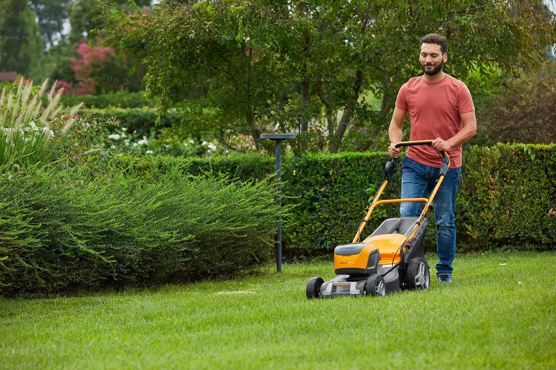 Аккумуляторные самоходные газонокосилки предназначены для кошения газонов средней и большой площади. Привод на колеса обеспечивает самостоятельное перемещение косилки по участку, оператору требуется только менять направление движения. Техника способна работать на территориях, имеющих сложный рельеф участка.