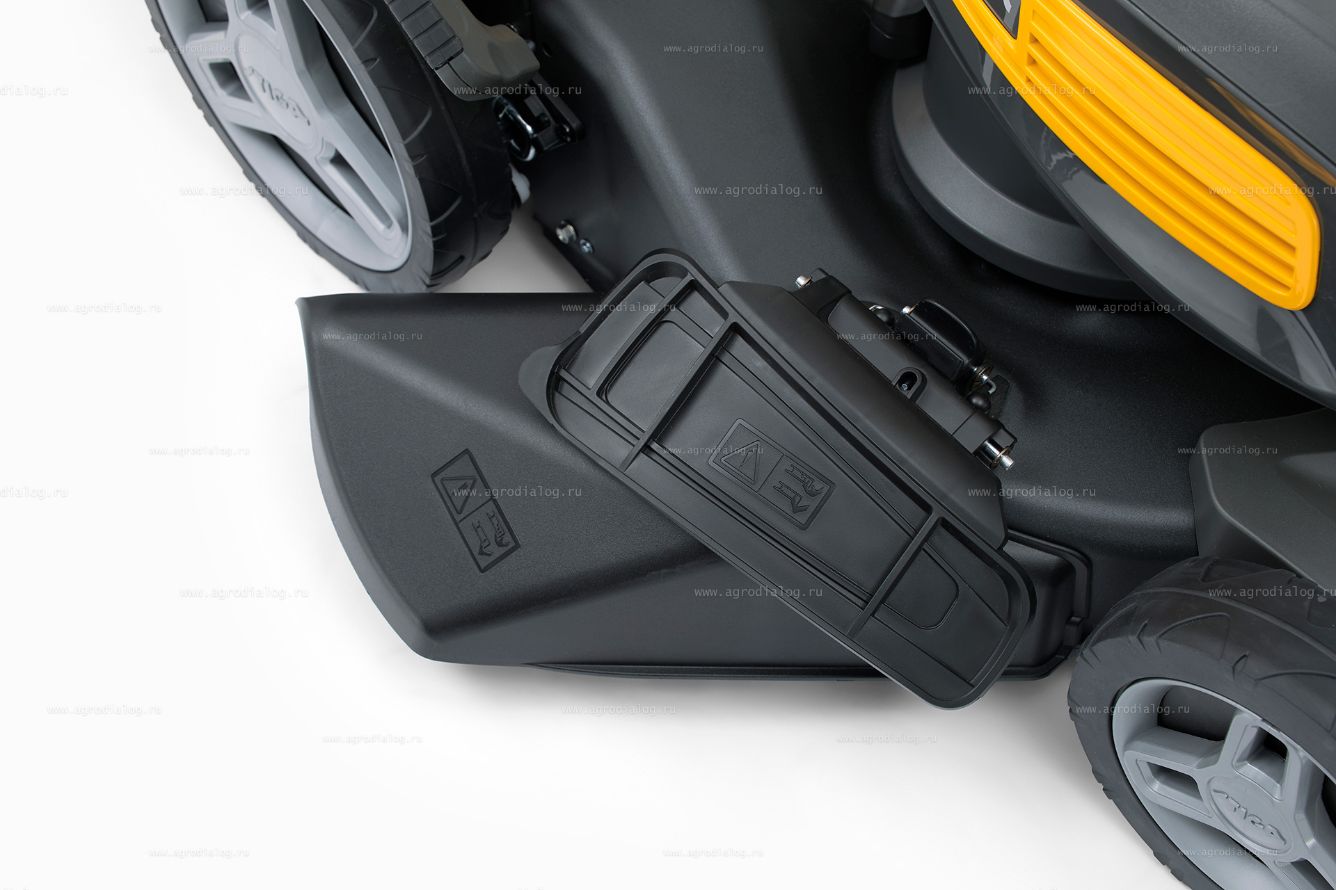- сбор в травосборник / выброс травы в сторону / задний выброс / мульчирование