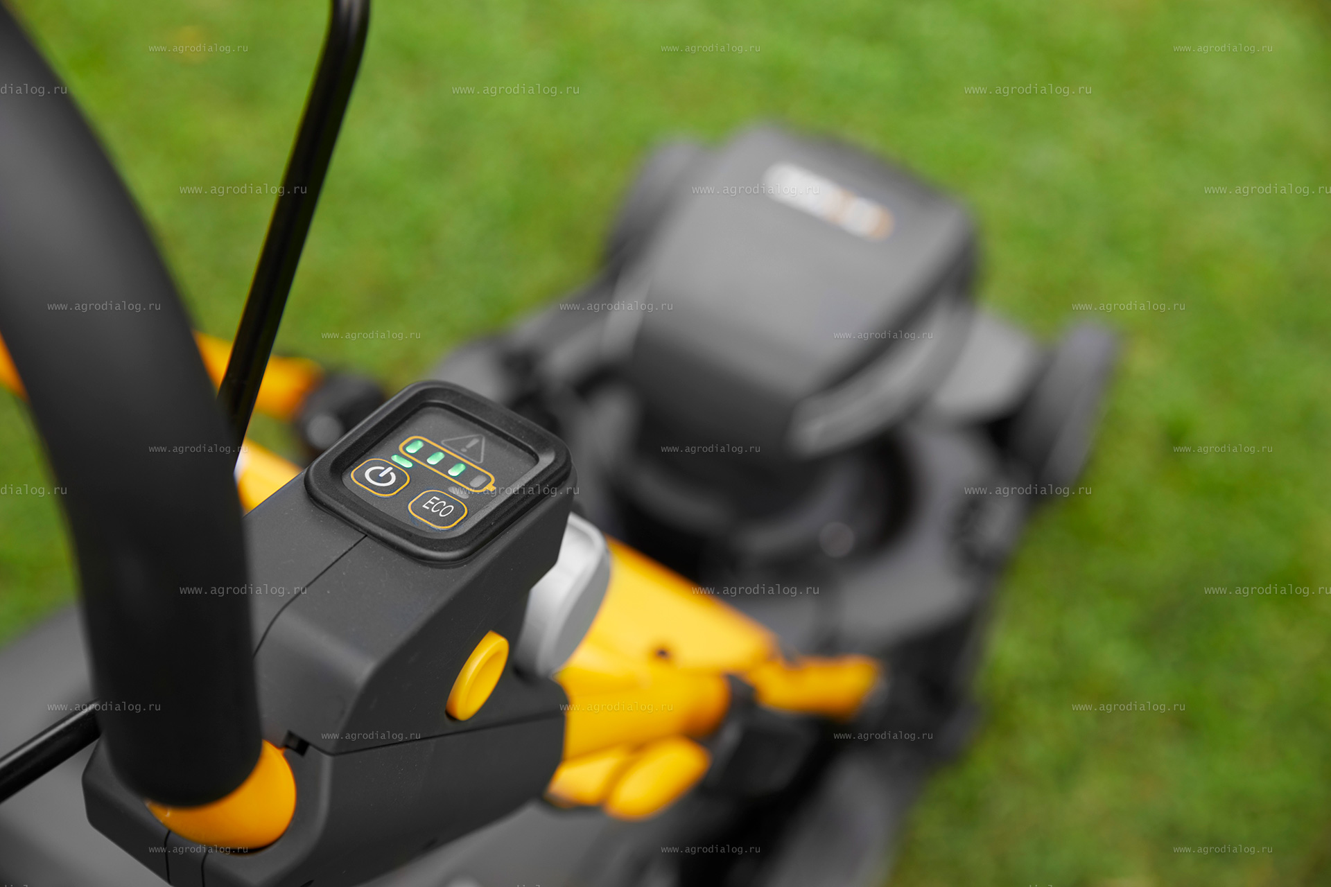 - Вся нужная информация для управления газонокосилкой сконцентрирована в одном месте – на рукоятке модели: активация ECO режима, заряд аккумуляторной батареи.