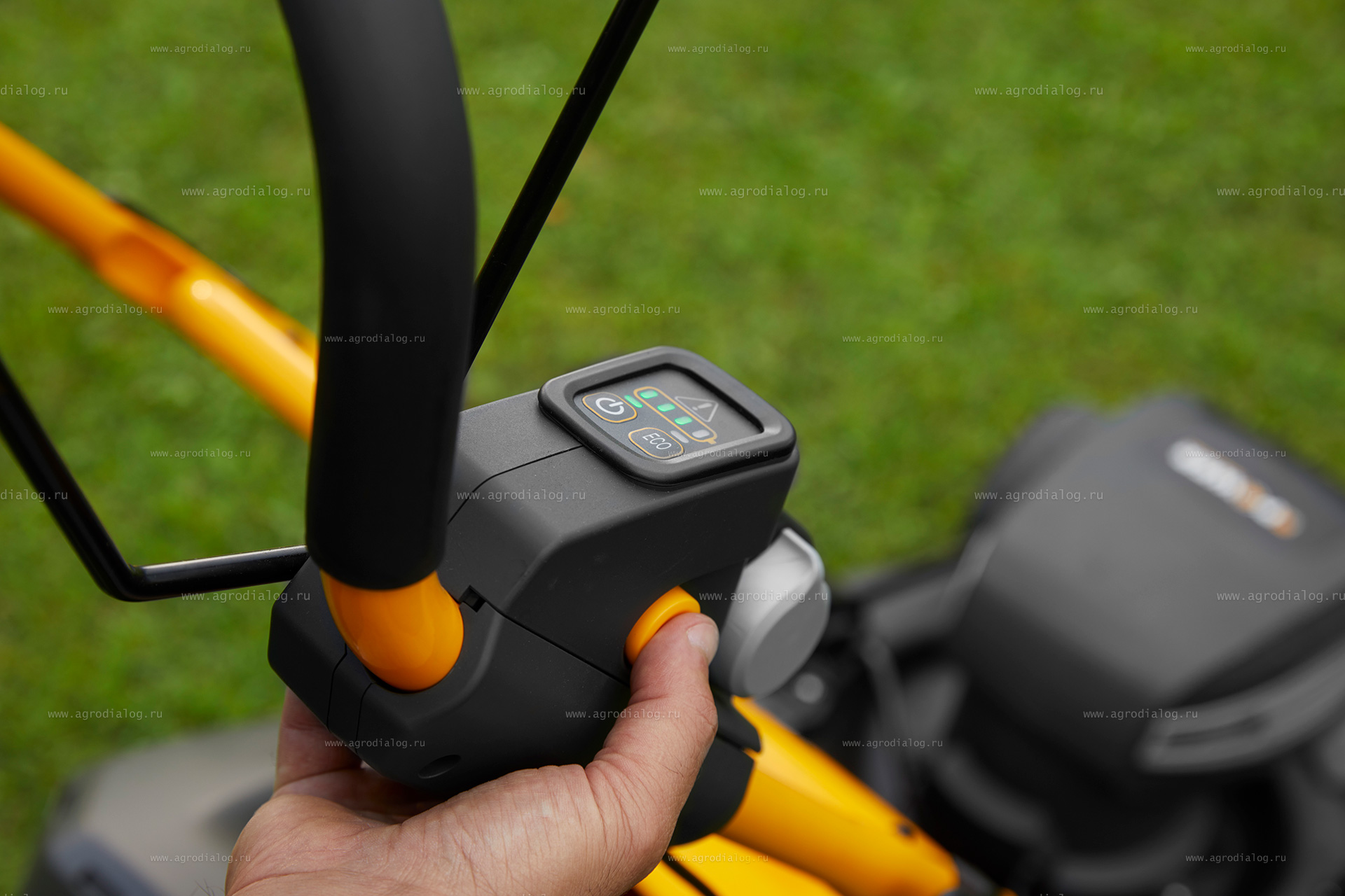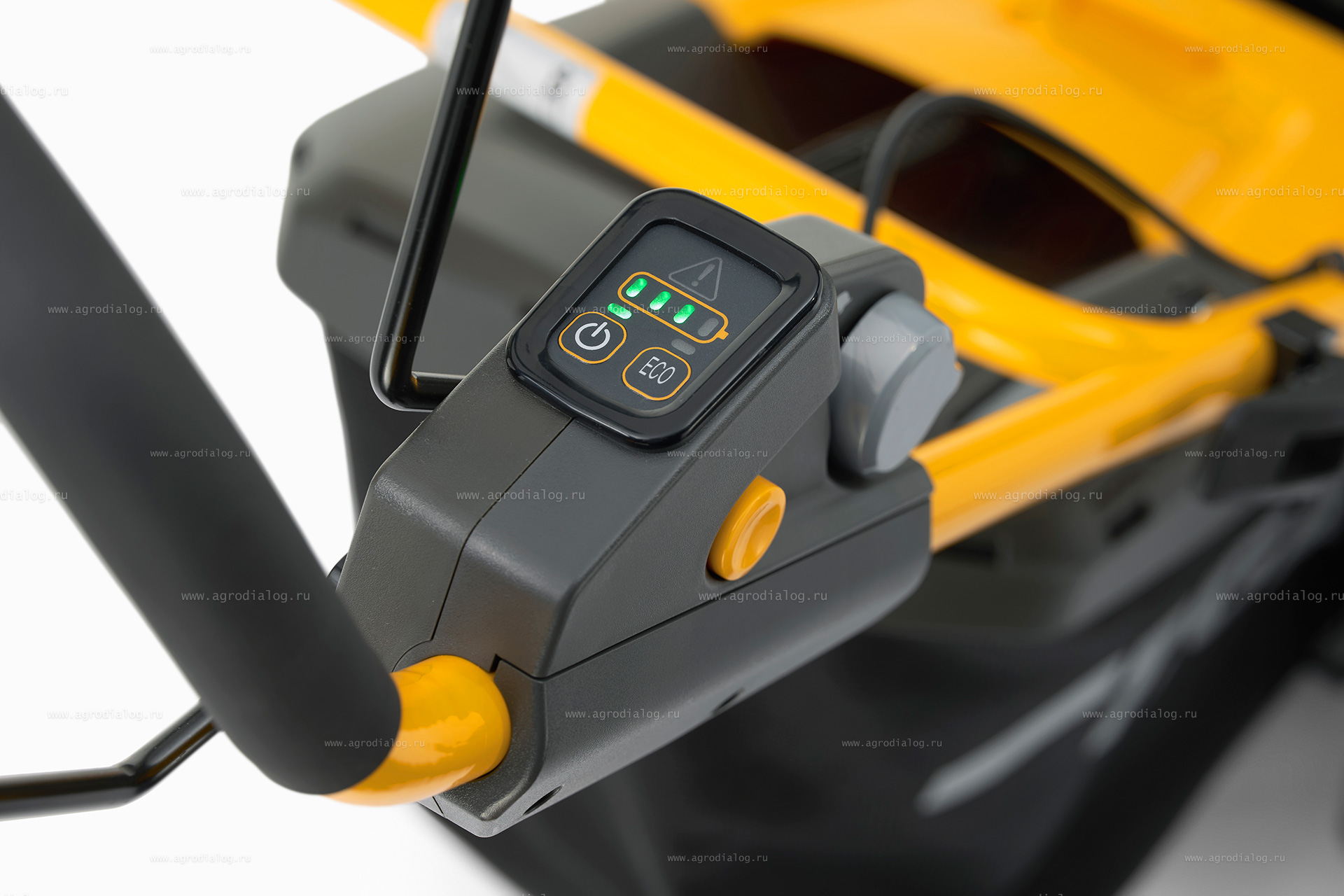 - Вся нужная информация для управления газонокосилкой сконцентрирована в одном месте – на рукоятке модели: активация ECO режима, заряд аккумуляторной батареи.