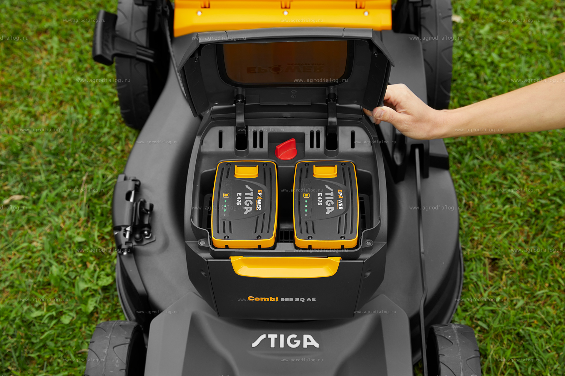 - Аккумулятор подходит ко всем инструментам 500, 700 и 900 серии – ножницы, коса, пила, садовая воздуходувка и, конечно, самоходная аккумуляторная газонокосилка Stiga Combi 955 SQ AE. Один аккумулятор и одно зарядное устройство для пяти групп инструментов – это рационально и эффективно.
