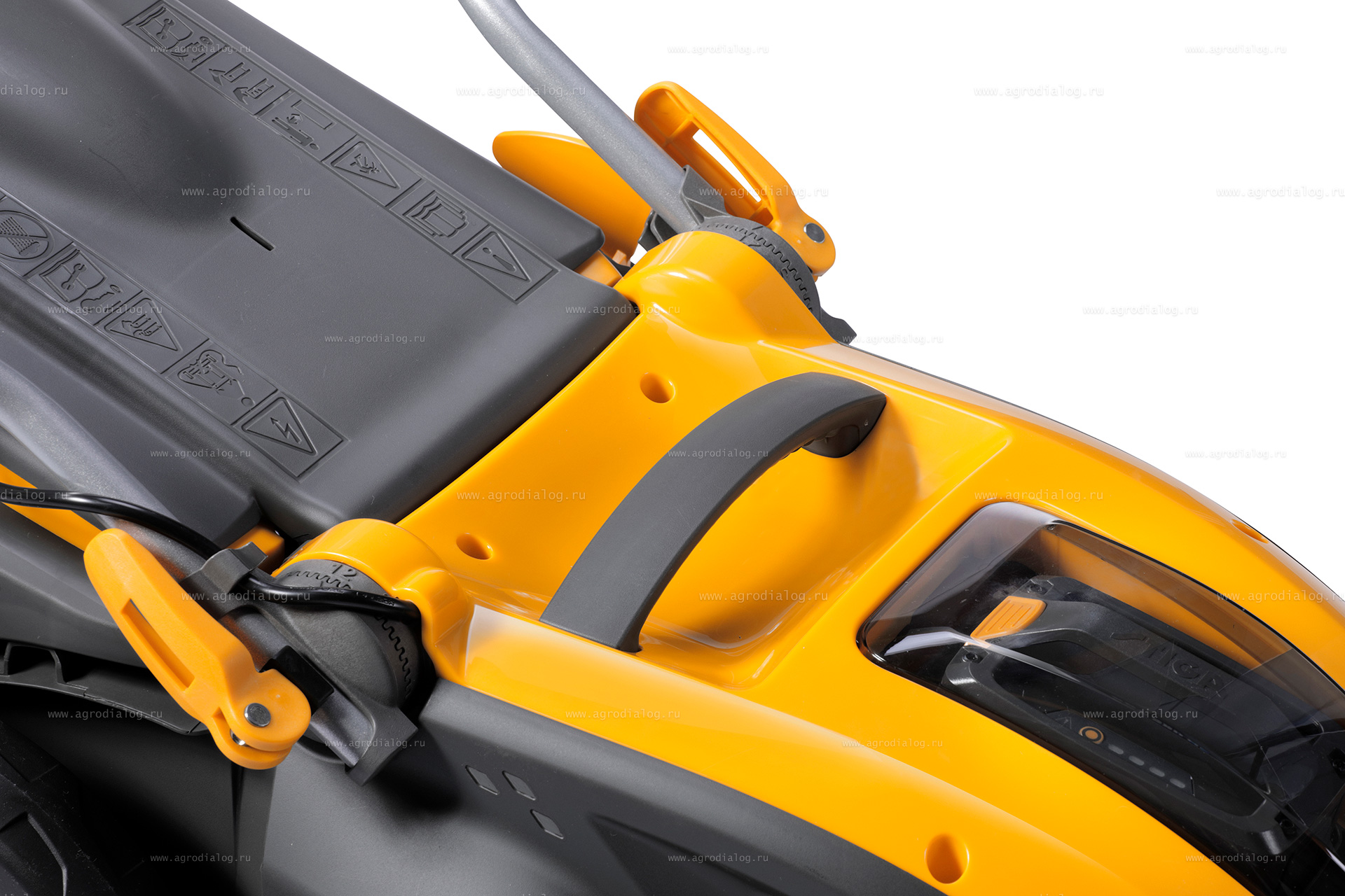 - Задний выброс без травосборника удобен при скашивании высокой травы.