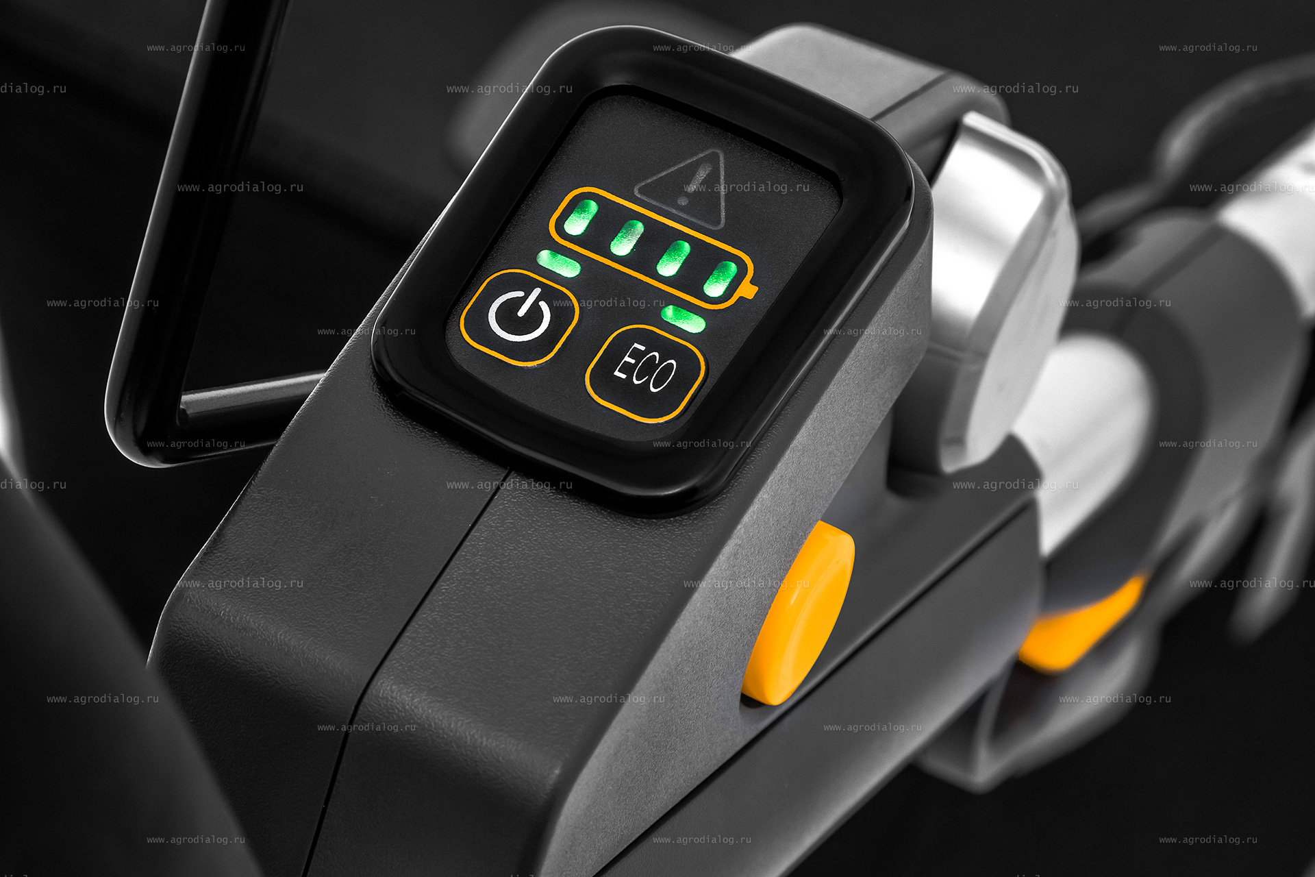 - Вся нужная информация для управления газонокосилкой сконцентрирована в одном месте – на рукоятке модели: активация ECO режима, заряд аккумуляторной батареи.