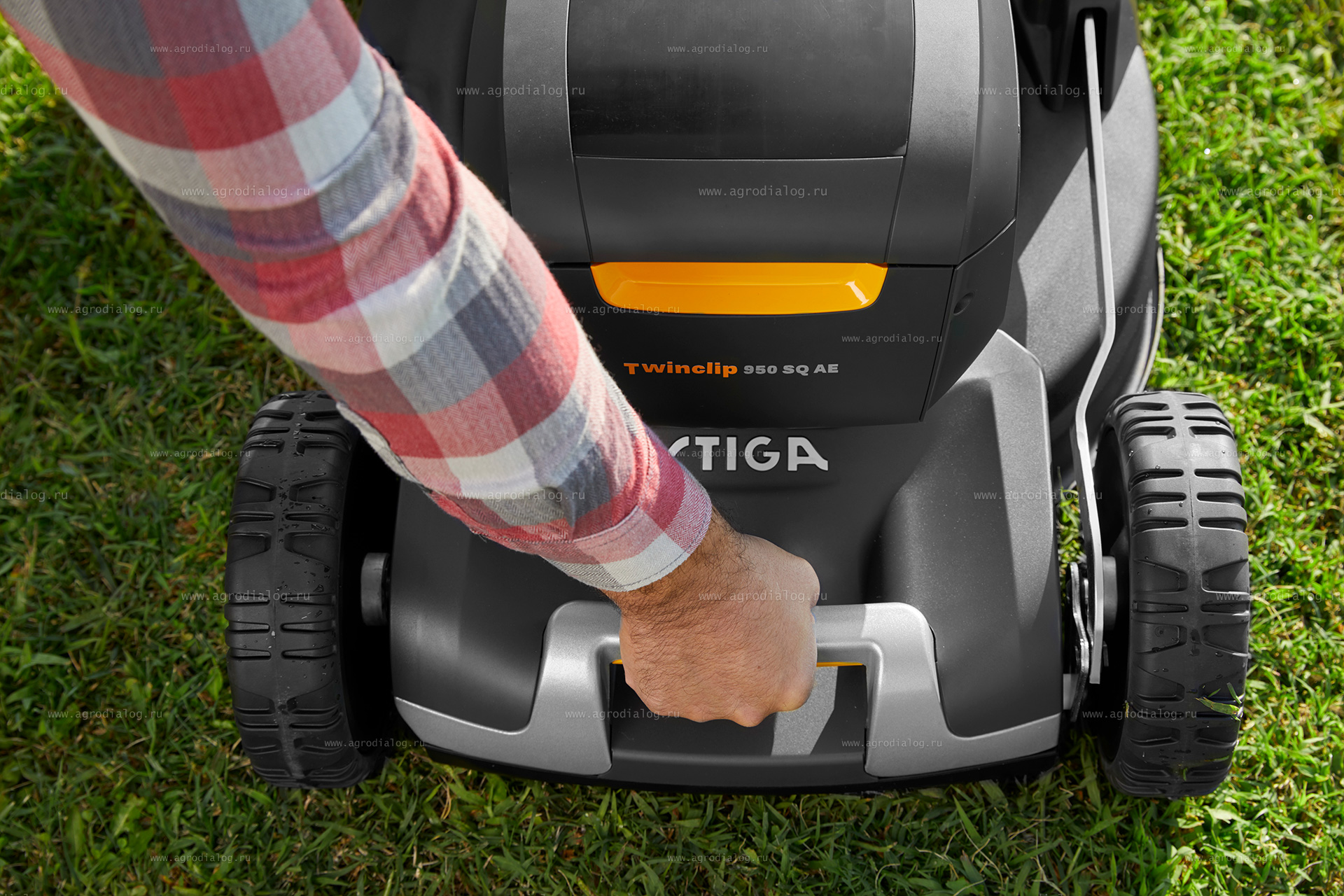 - Самоходная аккумуляторная газонокосилка Stiga Twinclip 950 SQ AE оснащена не требующим обслуживания, высокоэффективным бесщёточным двигателем, что гарантирует длительную работу и долгий срок службы инструмента.