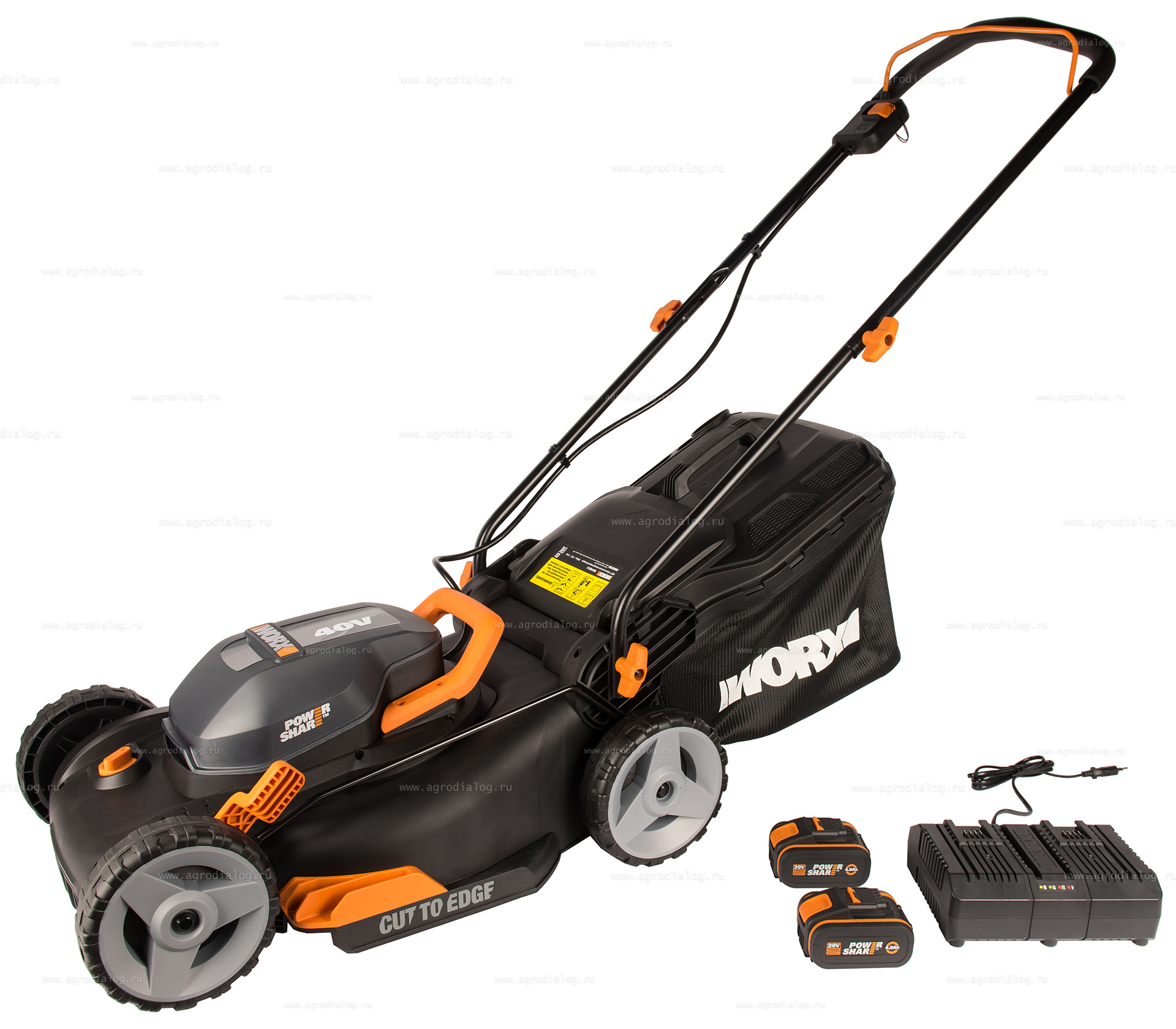 - газонокосилка / аккумулятор WA3553 4.0 Ач / аккумулятор WA3553 4.0 Ач / двойное зарядное устройство WA3883