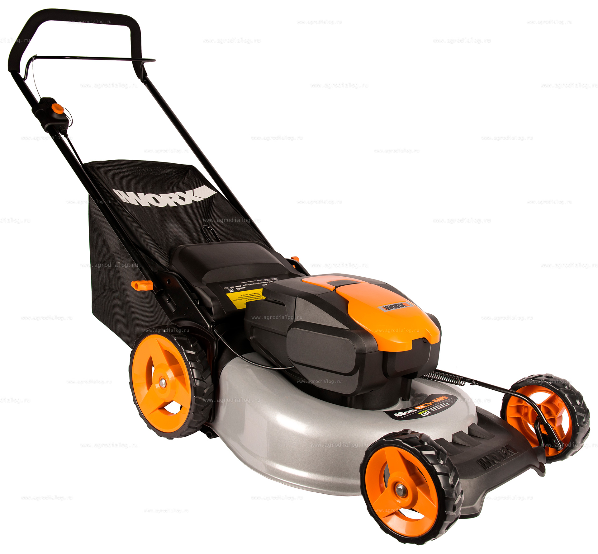 - Несамоходная аккумуляторная газонокосилка Worx WG751E имеет два штатных места под аккумуляторы. Время автономной работы увеличивается вдвое. Для обеспечения максимальной автономной работы рекомендуется устанавливать два полностью заряженных аккумулятора.