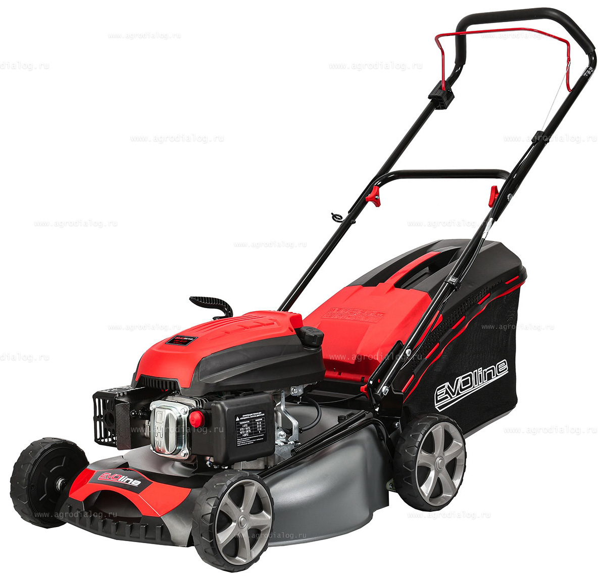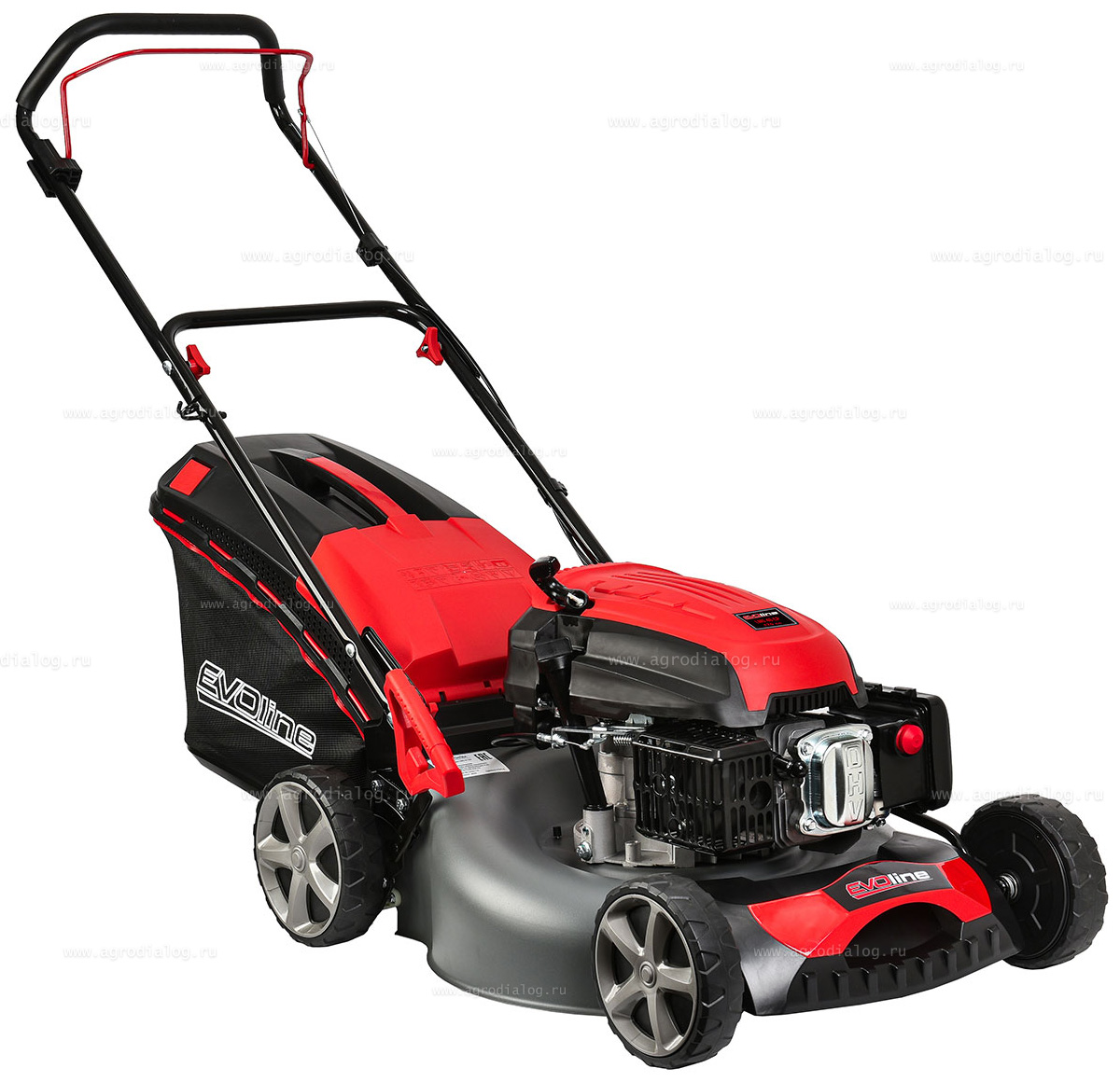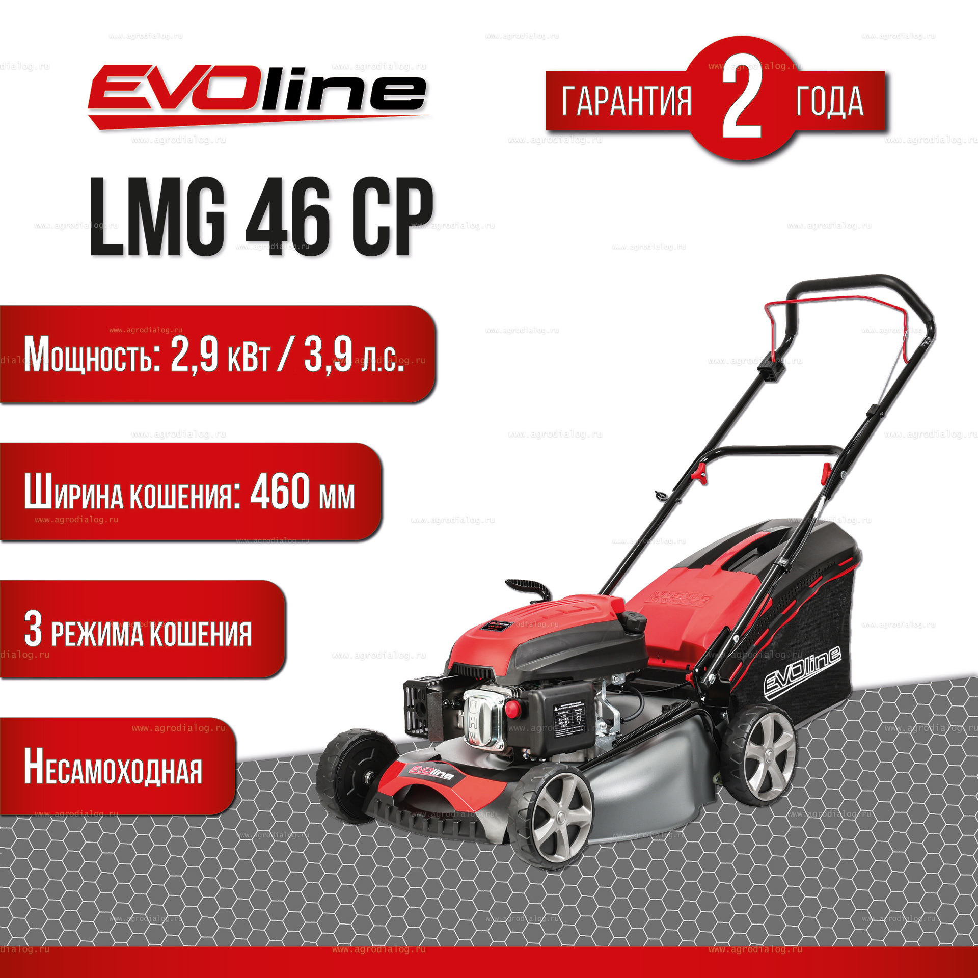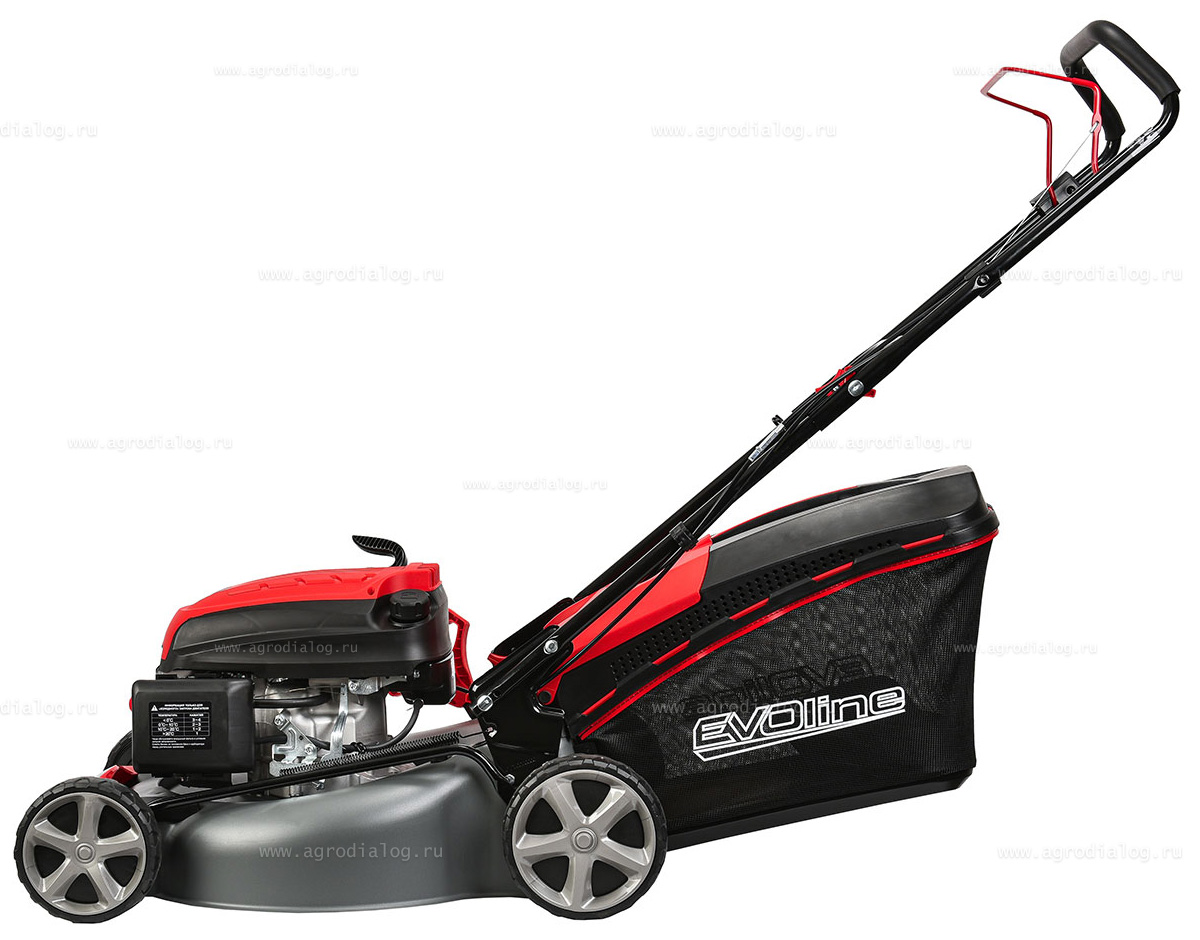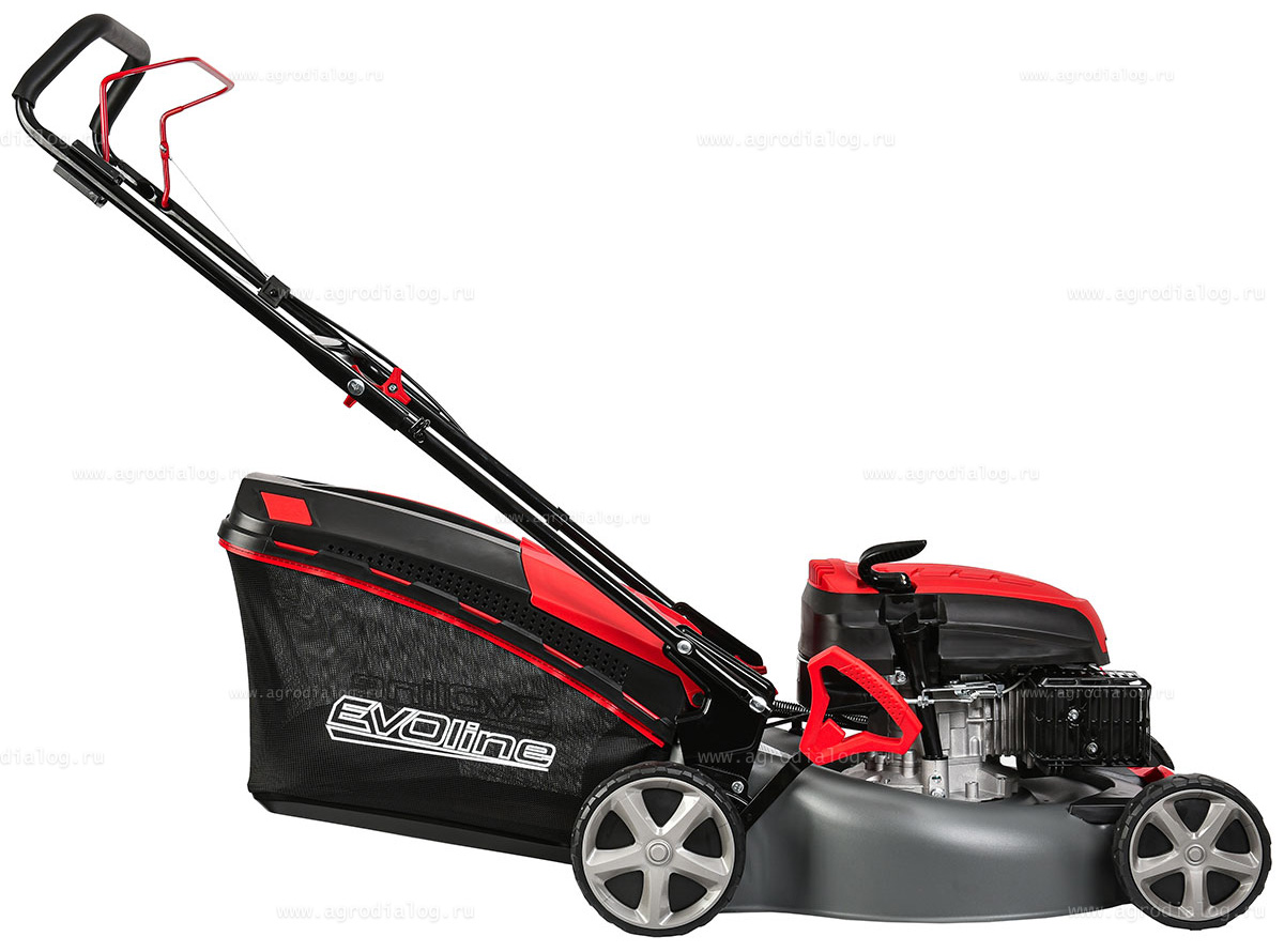 - Бензиновая газонокосилка EVOline LMG 46 CP оснащена косильным ножом повышенной прочности, со специально подобранным углом атаки режущей кромки.