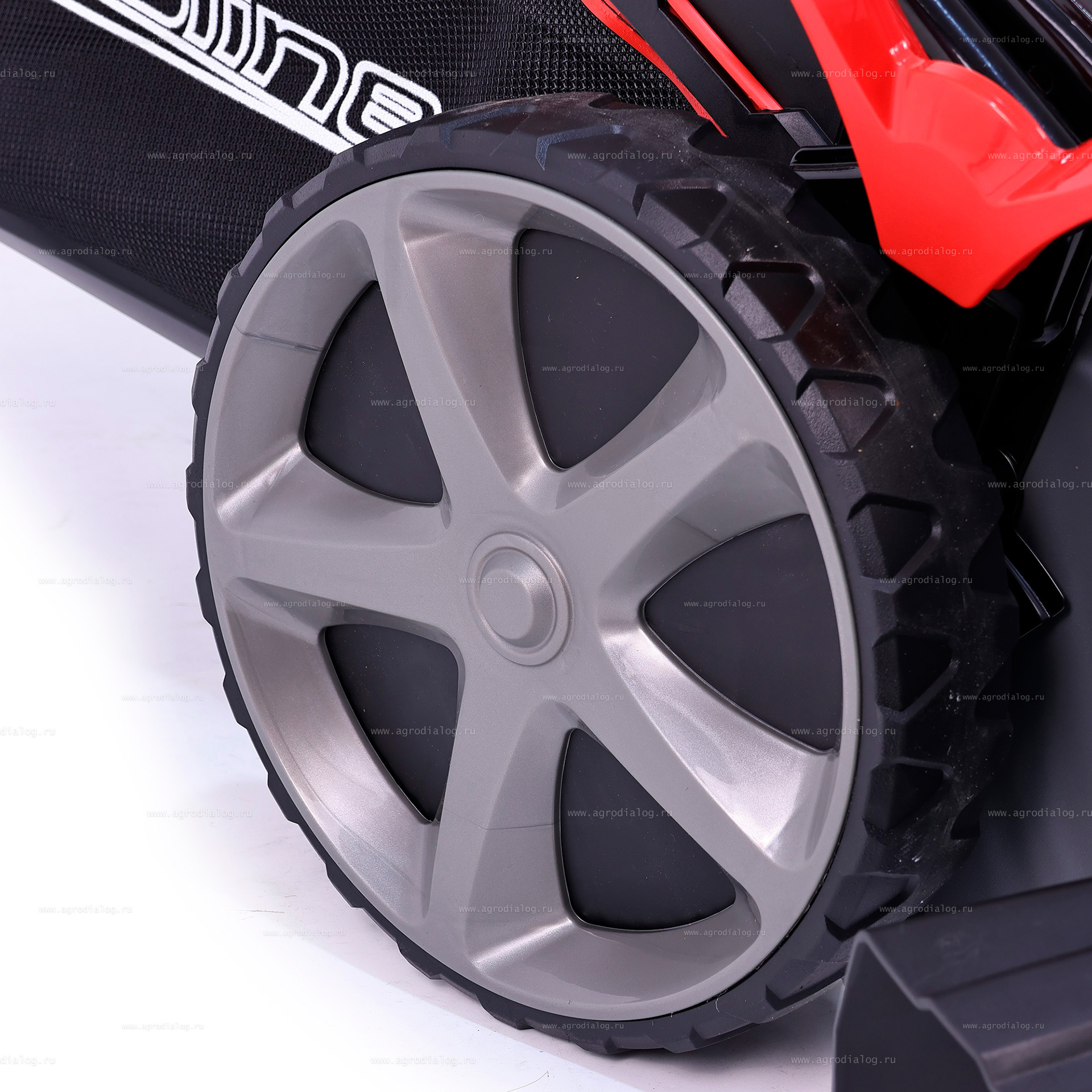 - Задний привод обеспечивает отличное сцепление с газонным покрытием на неровной и холмистой местности.