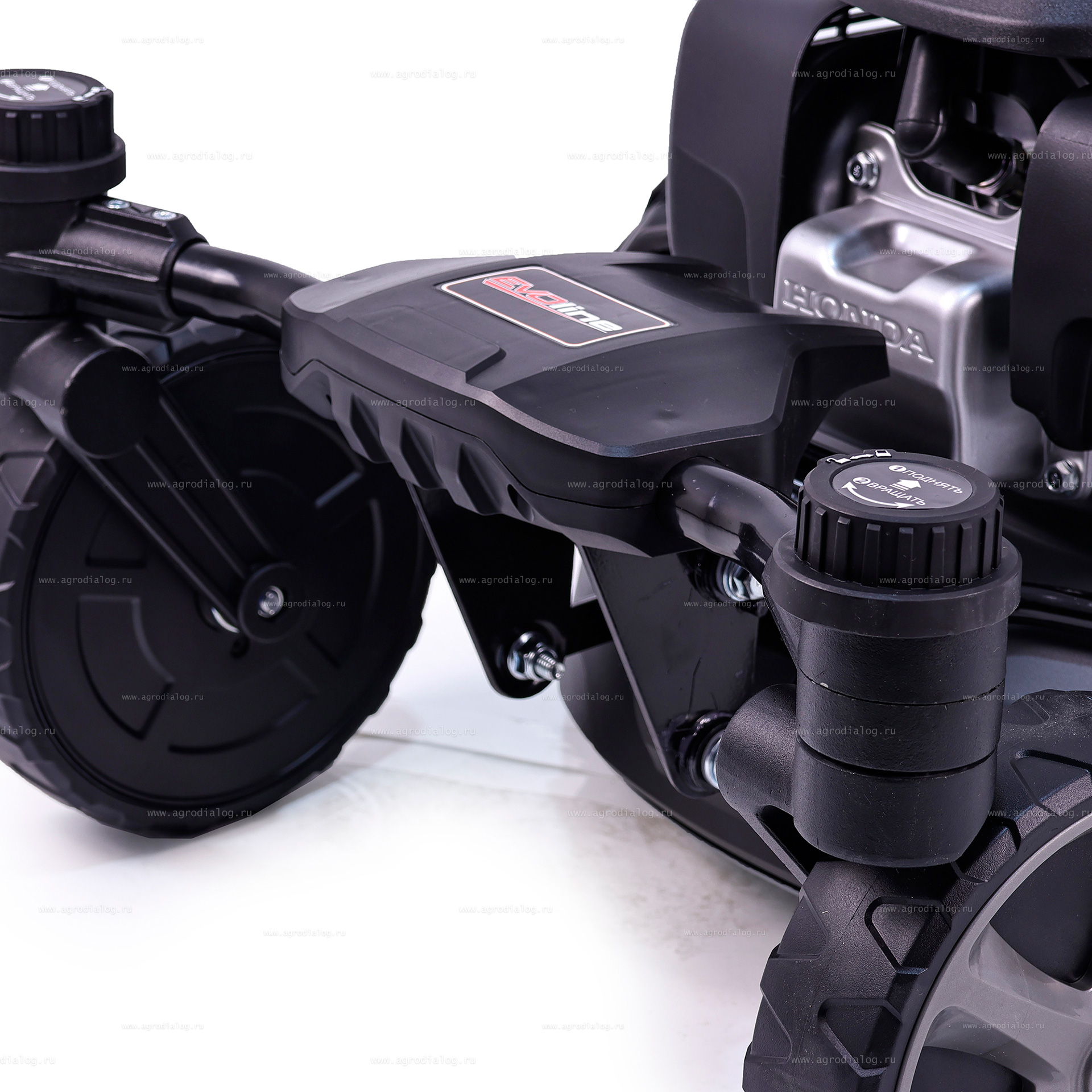 - Быстрая и легкая регулировка высоты стрижки травы. Одна легкодоступная эргономичная рукоятка позволяет регулировать высоту всей режущей деки и заменяет собой индивидуальные рычаги для каждой оси или каждого колеса.