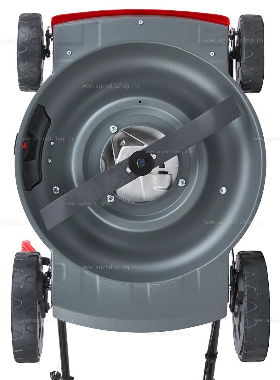 - Центральная регулировка высоты скашивания осуществляется с помощью удобной ручки.