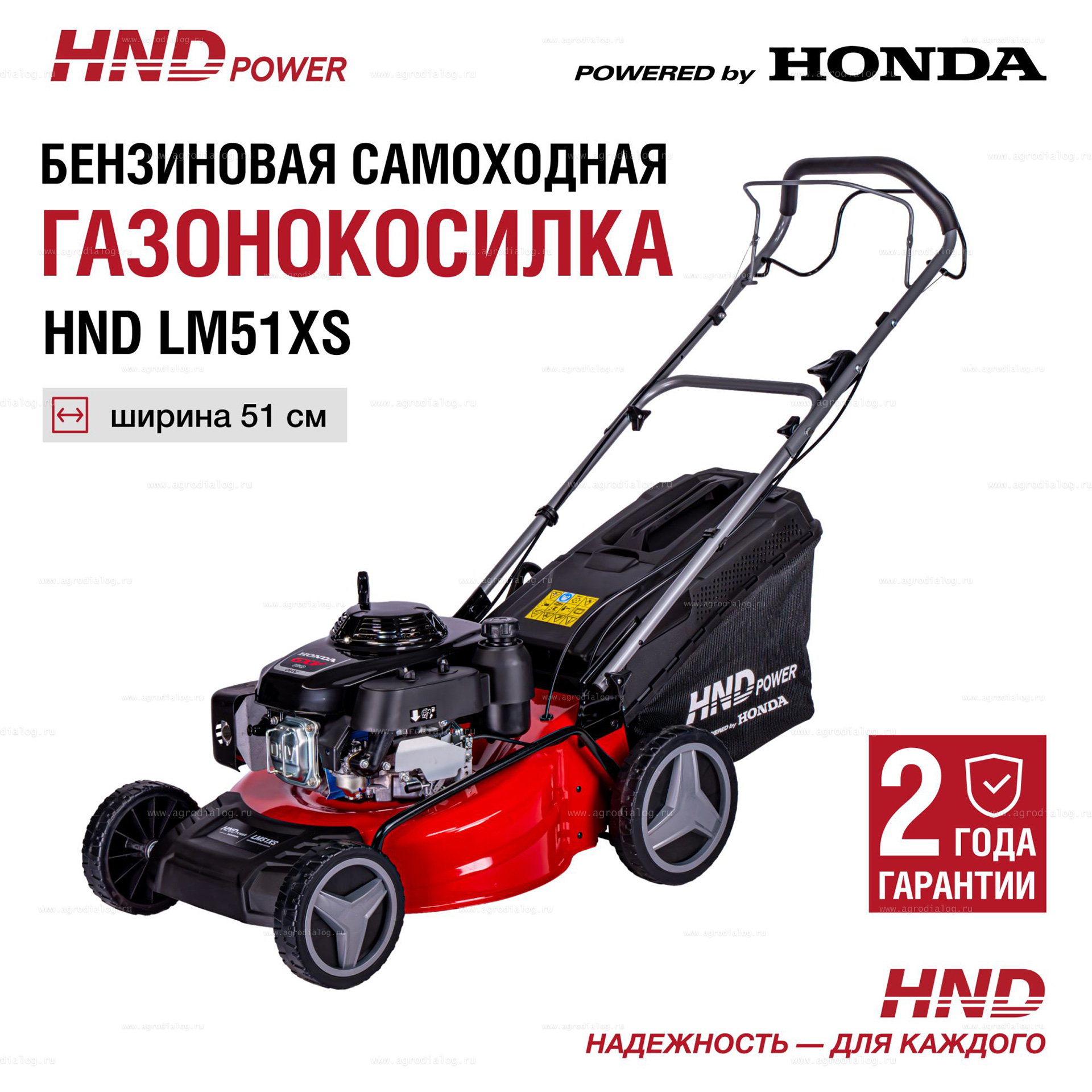 - Бензиновая газонокосилка HND LM 51 XS оснащена косильным ножом повышенной прочности, со специально подобранным углом атаки режущей кромки.