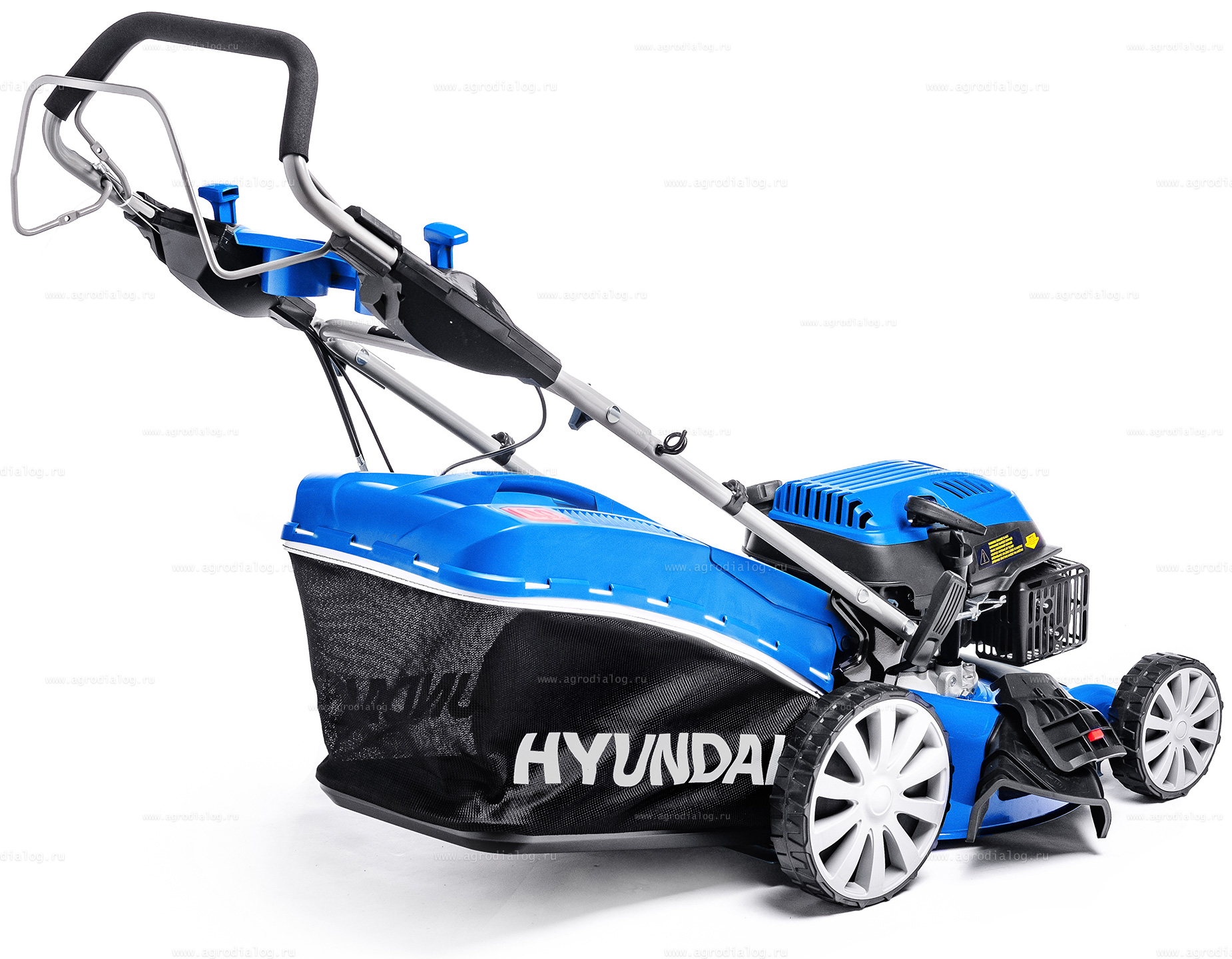 - Самоходная бензиновая газонокосилка Hyundai L 4610S имеет привод на задние колеса, что значительно упрощает кошение больших площадей и обеспечивает отличное сцепление с газонным покрытием.
