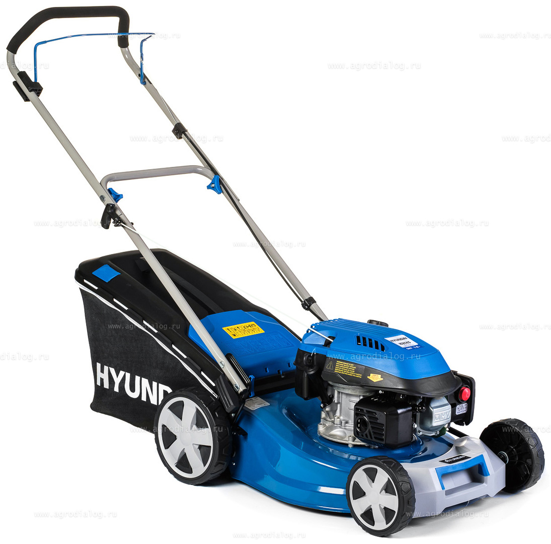 - Бензиновая газонокосилка Hyundai L 4620 оснащена косильным ножом повышенной прочности, со специально подобранным углом атаки режущей кромки.