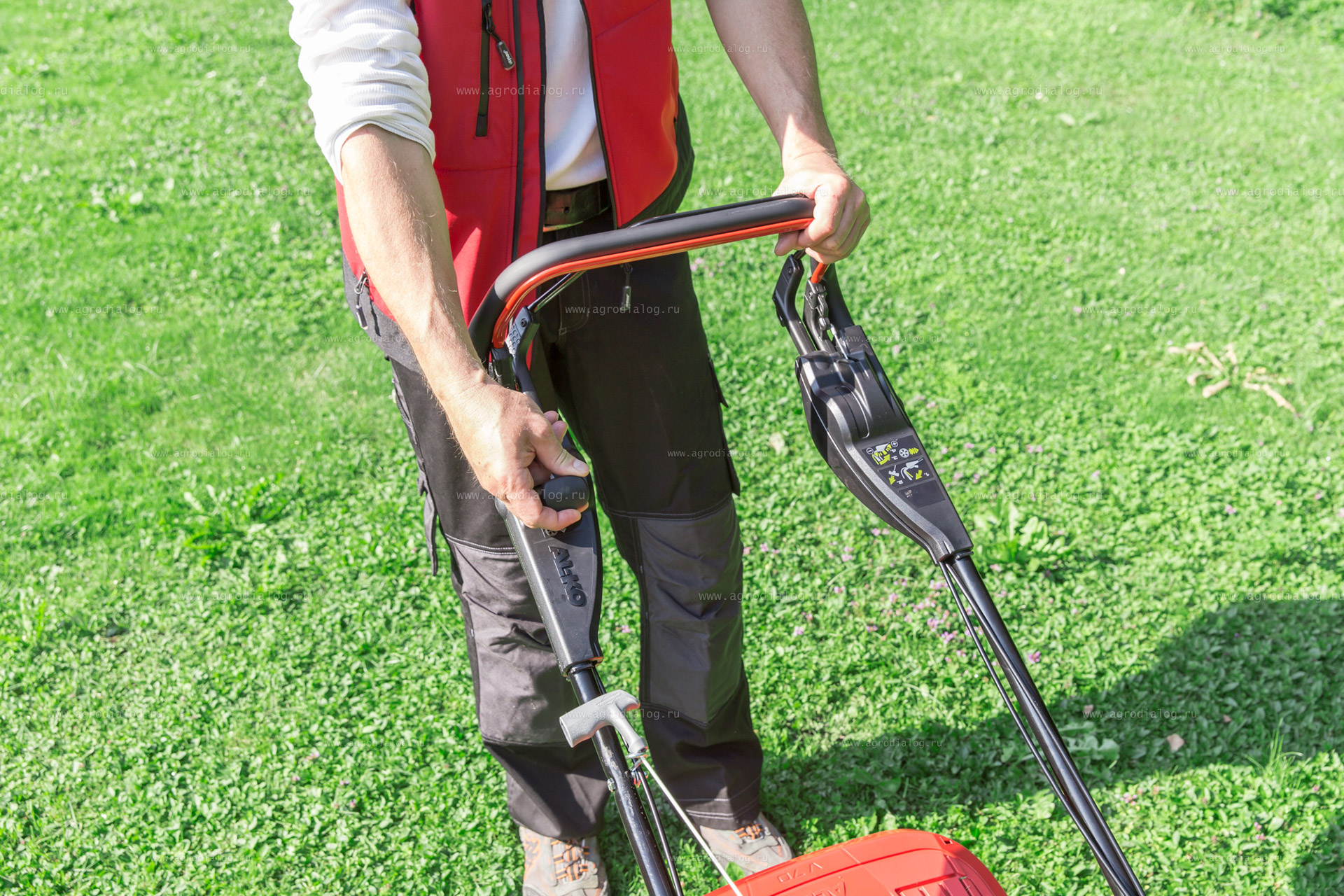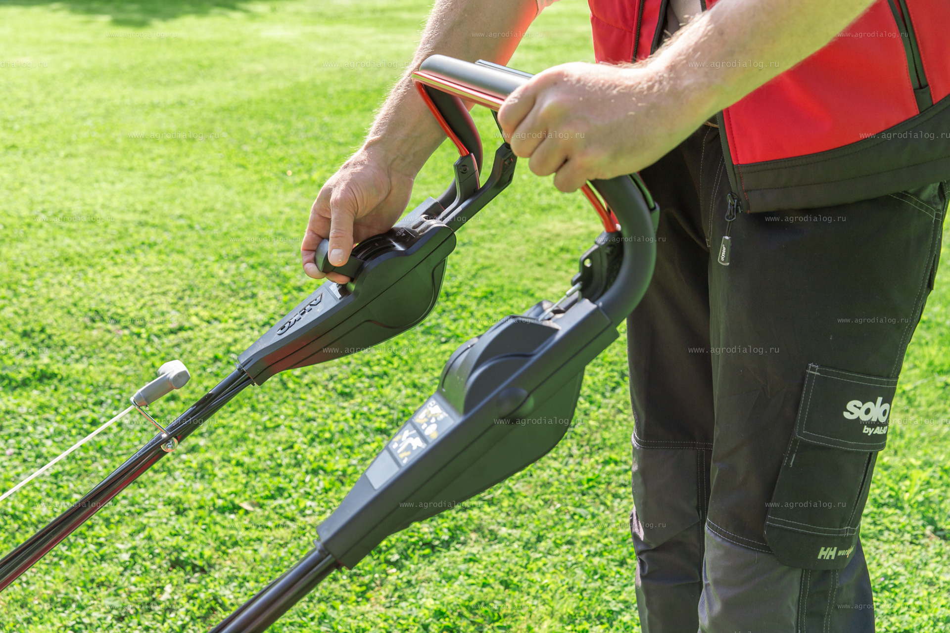 - Эргономичная рукоятка управления обеспечивает минимальное напряжение рук в ходе работы, мягкая обтяжка снижает вибрацию, возможность регулировки по высоте позволяет подобрать наиболее удобное положение людям разного роста. Складывается для удобной транспортировки и хранения.
