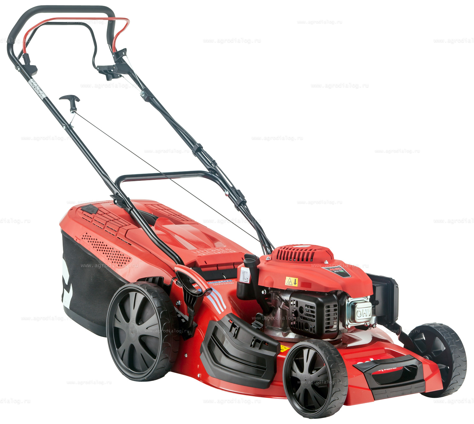 - Задний привод обеспечивает отличное сцепление с газонным покрытием на неровной и холмистой местности.
