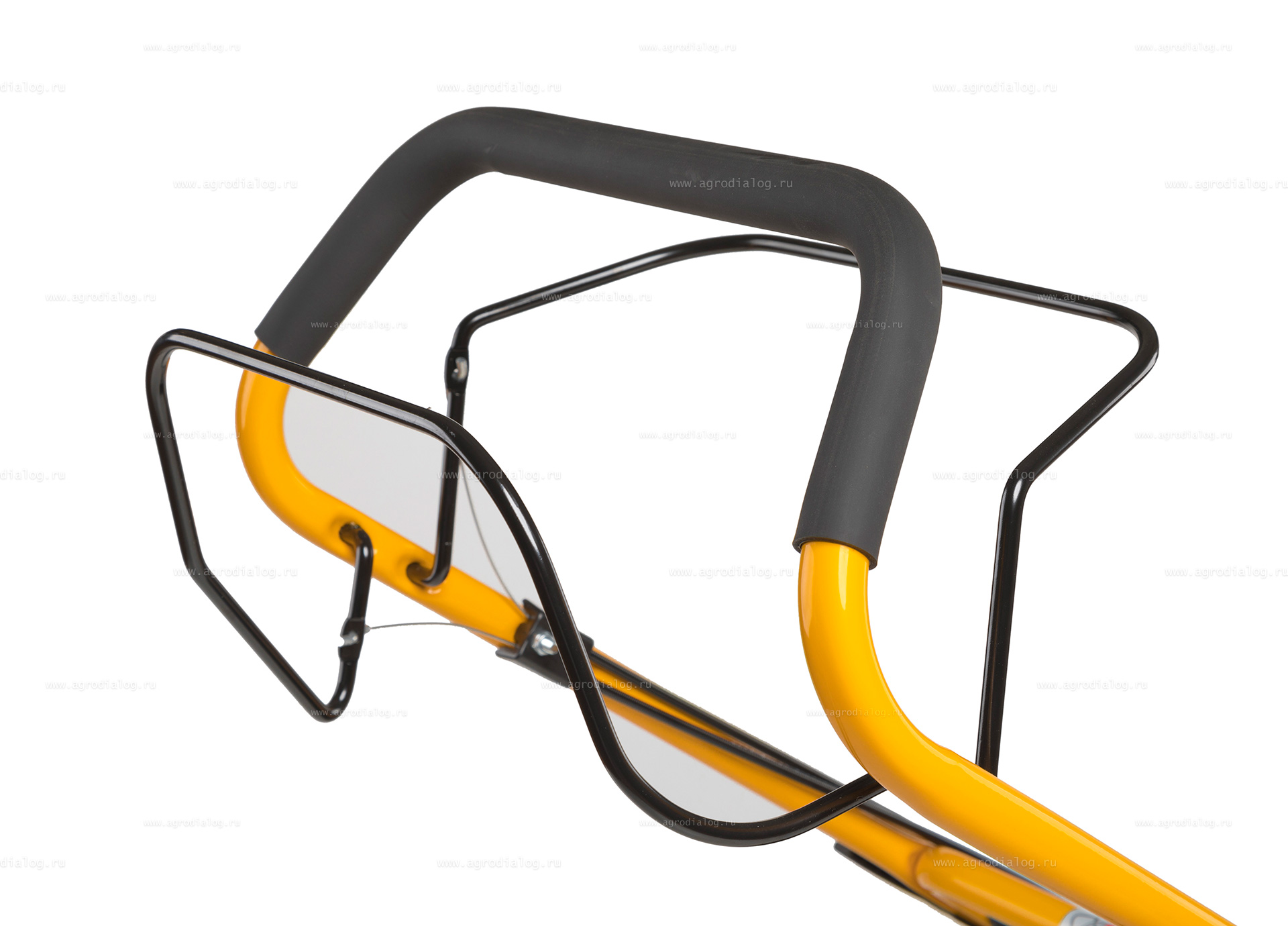 - Эргономичная рукоятка управления обеспечивает минимальное напряжение рук в ходе работы, возможность регулировки по высоте позволяет подобрать наиболее удобное положение людям разного роста. Складывается для удобной транспортировки и хранения.