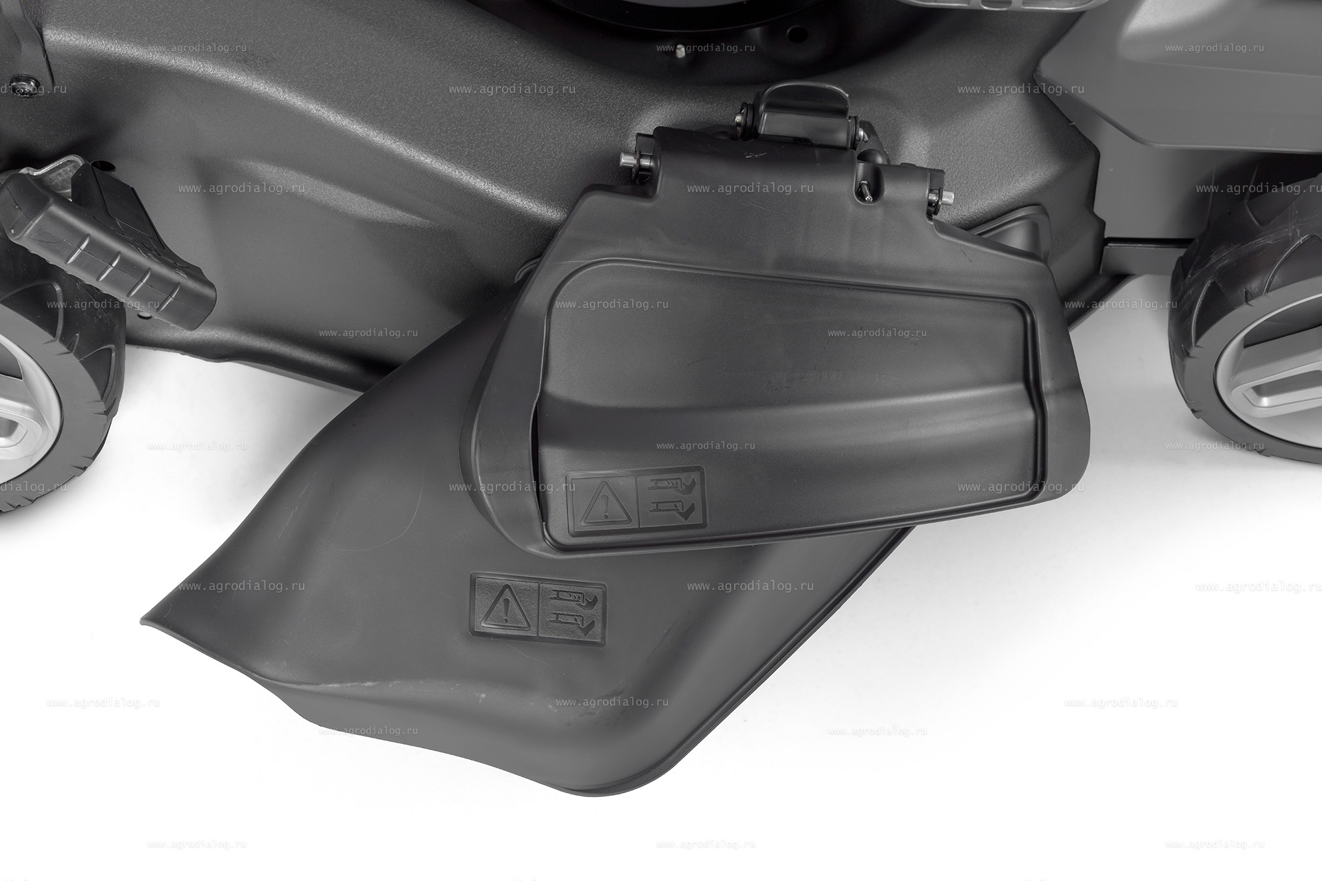 - Четыре режима кошения позволяют выбрать необходимый вариант в зависимости от ваших потребностей: сбор травы в травосборник, мульчирование, боковой и задний выброс.