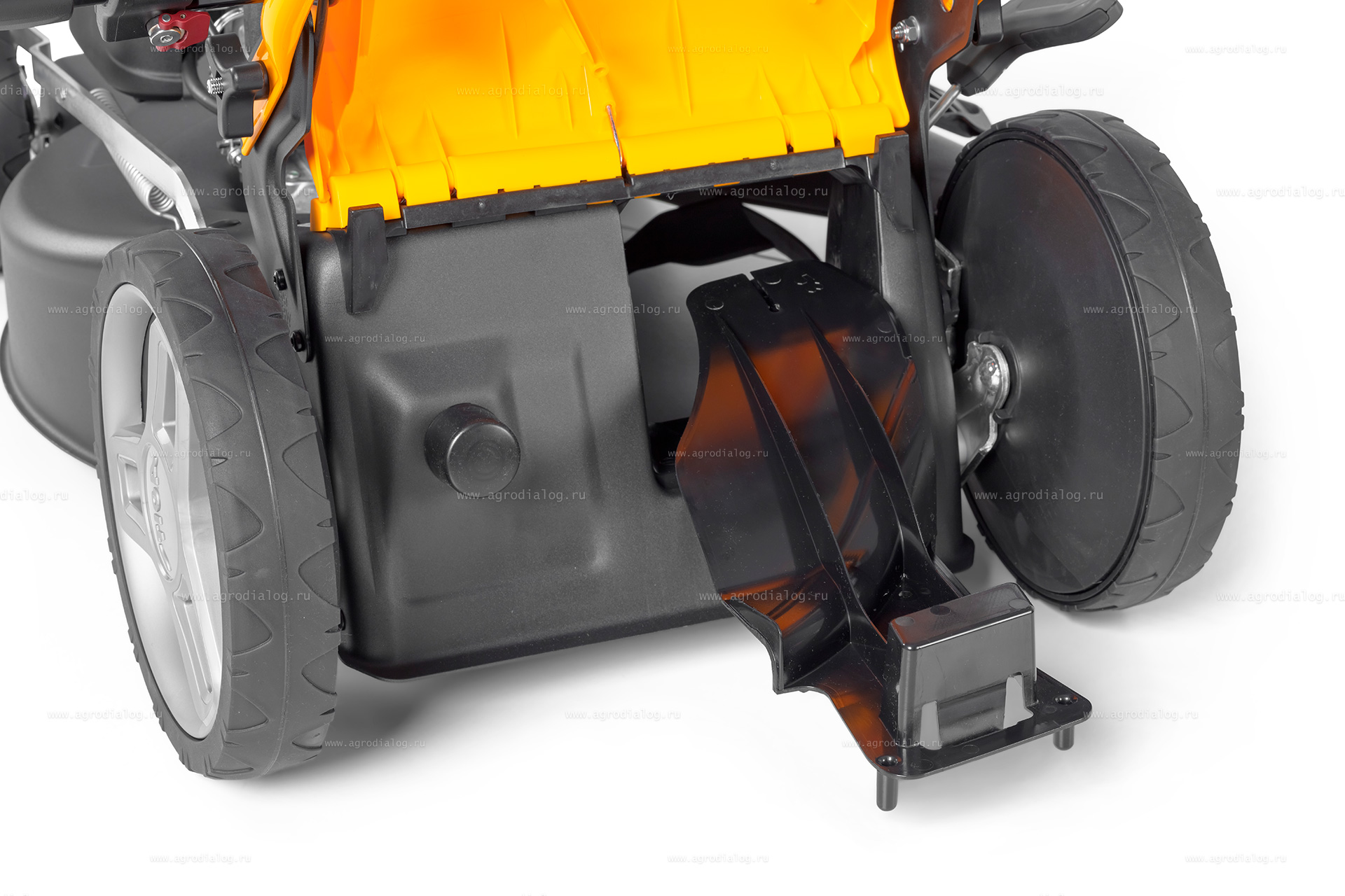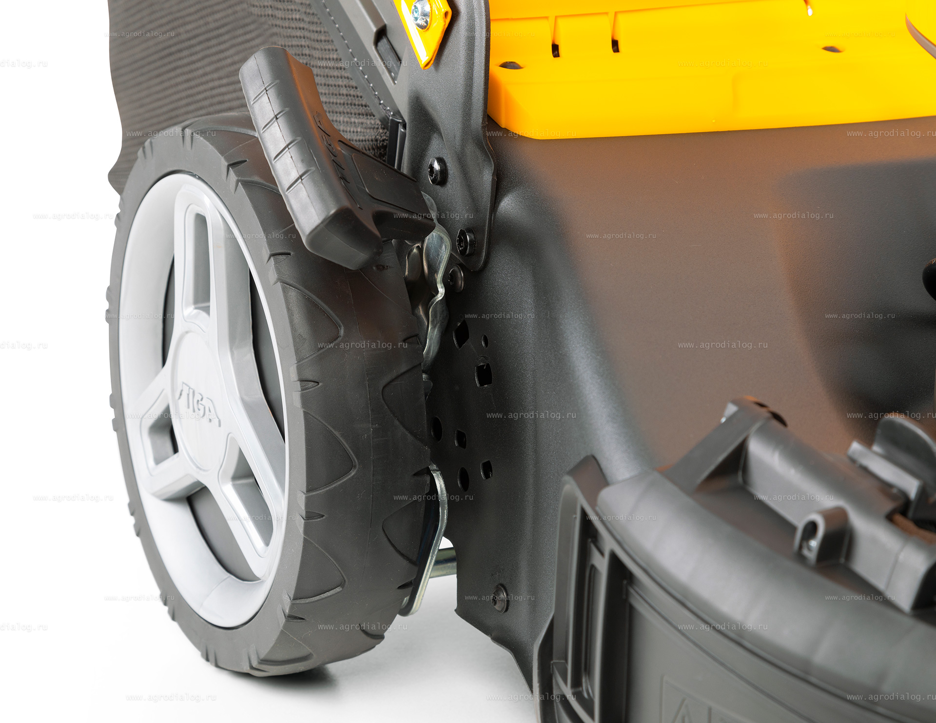 - Большие задние колеса облегчают маневрирование на участках со сложным рельефом.