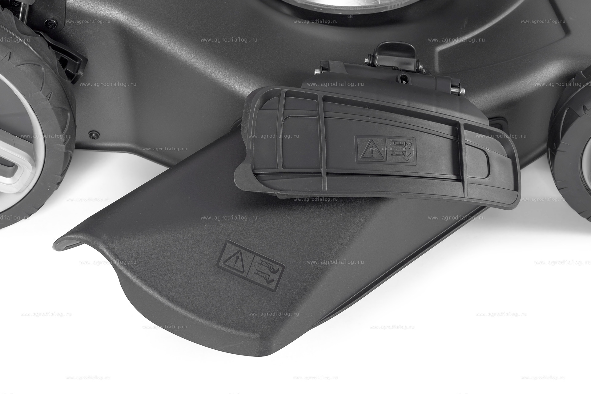 - Четыре режима кошения позволяют выбрать необходимый вариант в зависимости от ваших потребностей: сбор травы в травосборник, мульчирование, боковой и задний выброс.