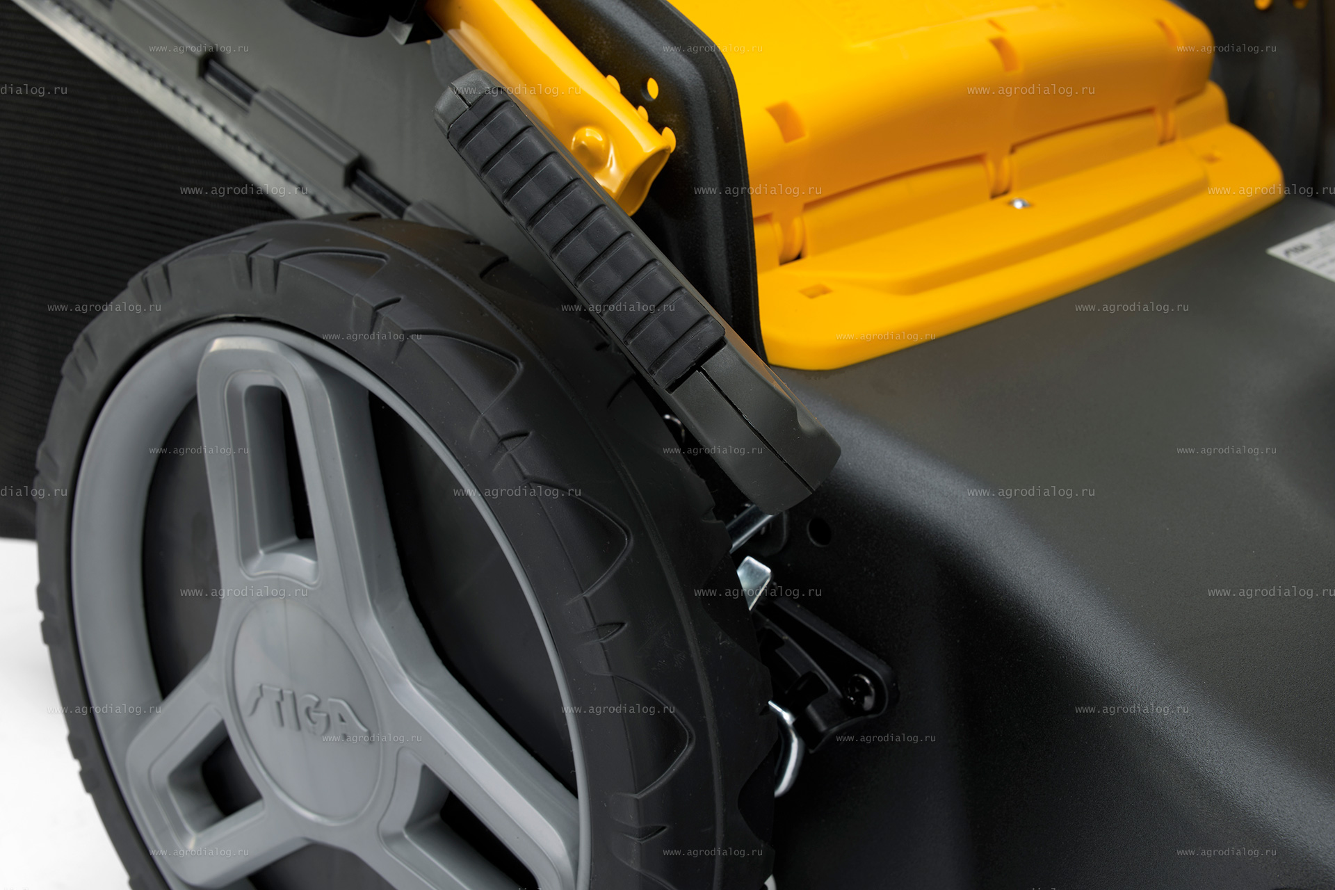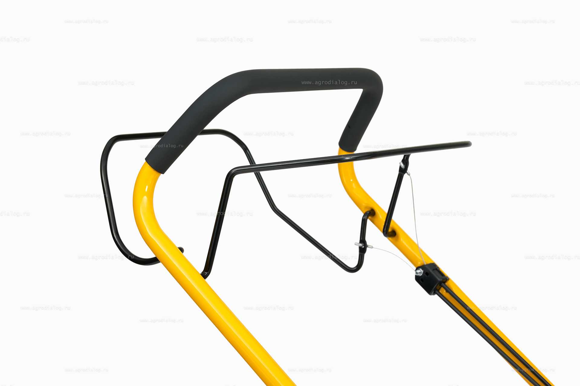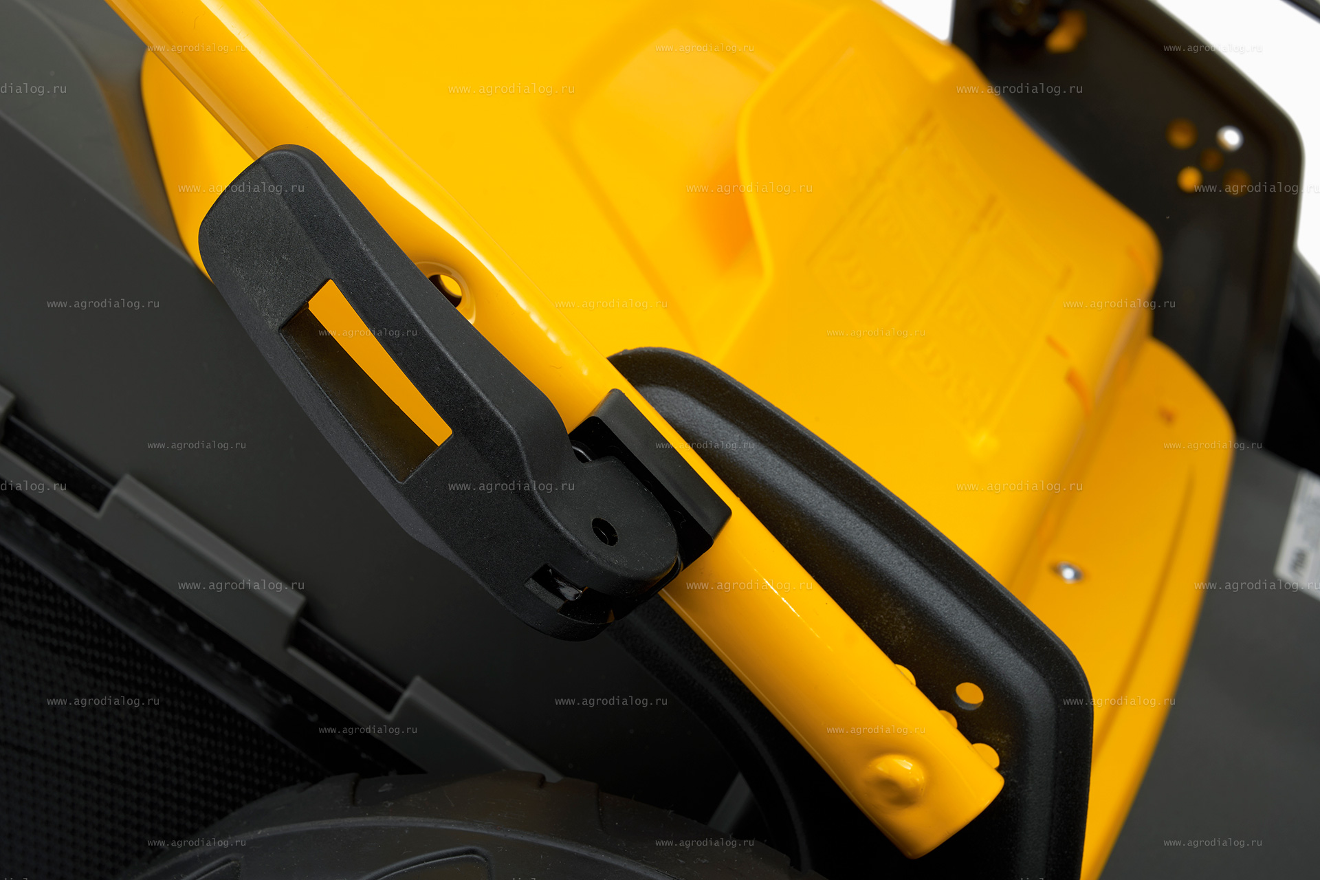 - Эргономичная рукоятка управления обеспечивает минимальное напряжение рук в ходе работы, возможность регулировки по высоте позволяет подобрать наиболее удобное положение людям разного роста. Складывается для удобной транспортировки и хранения.