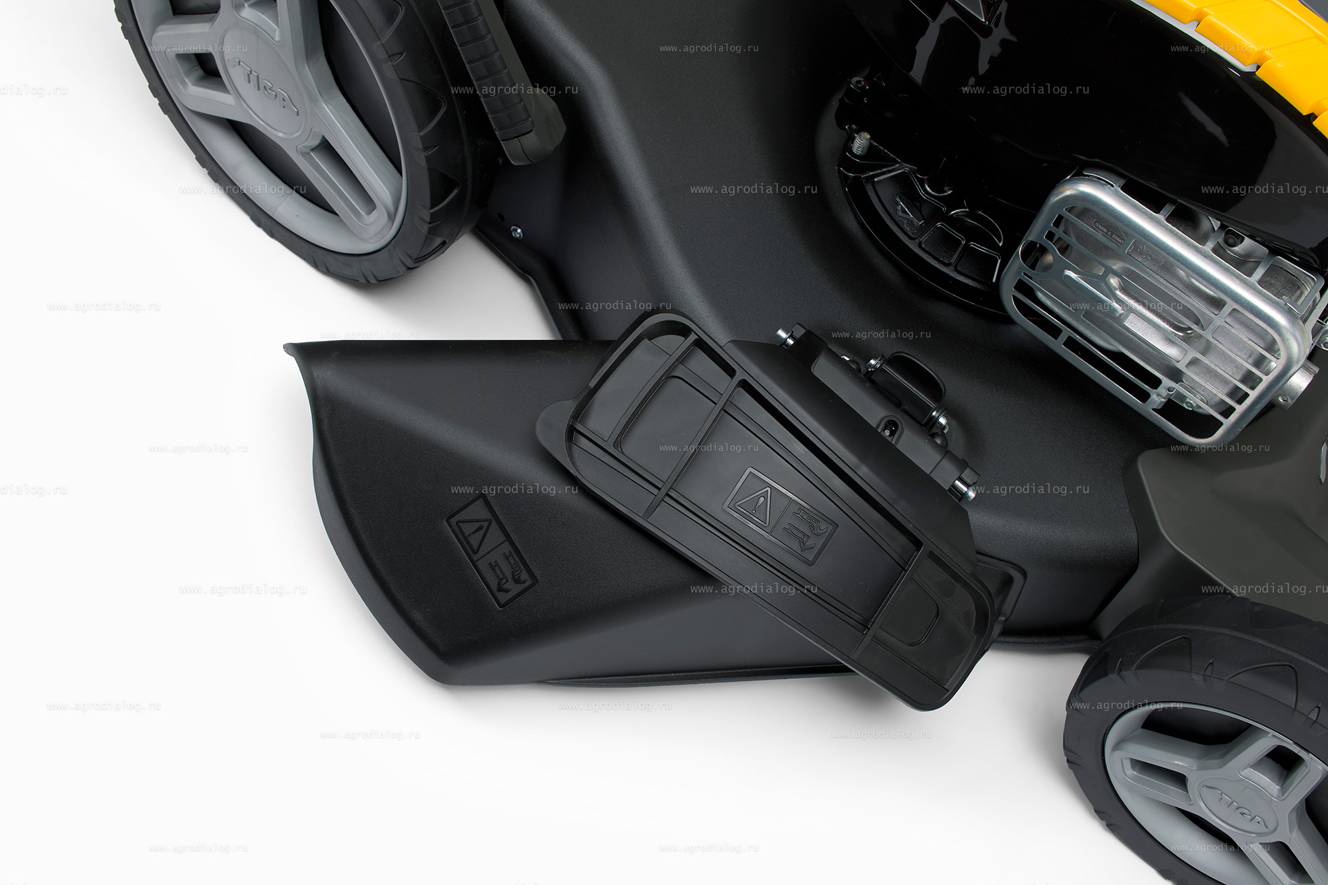 - Технология Mow N’ Stow позволяет хранить газонокосилку в вертикальном положении, что уменьшает необходимую площадь для хранения на 70% и обеспечивает легкий доступ для очистки нижней части деки и обслуживания ножей.