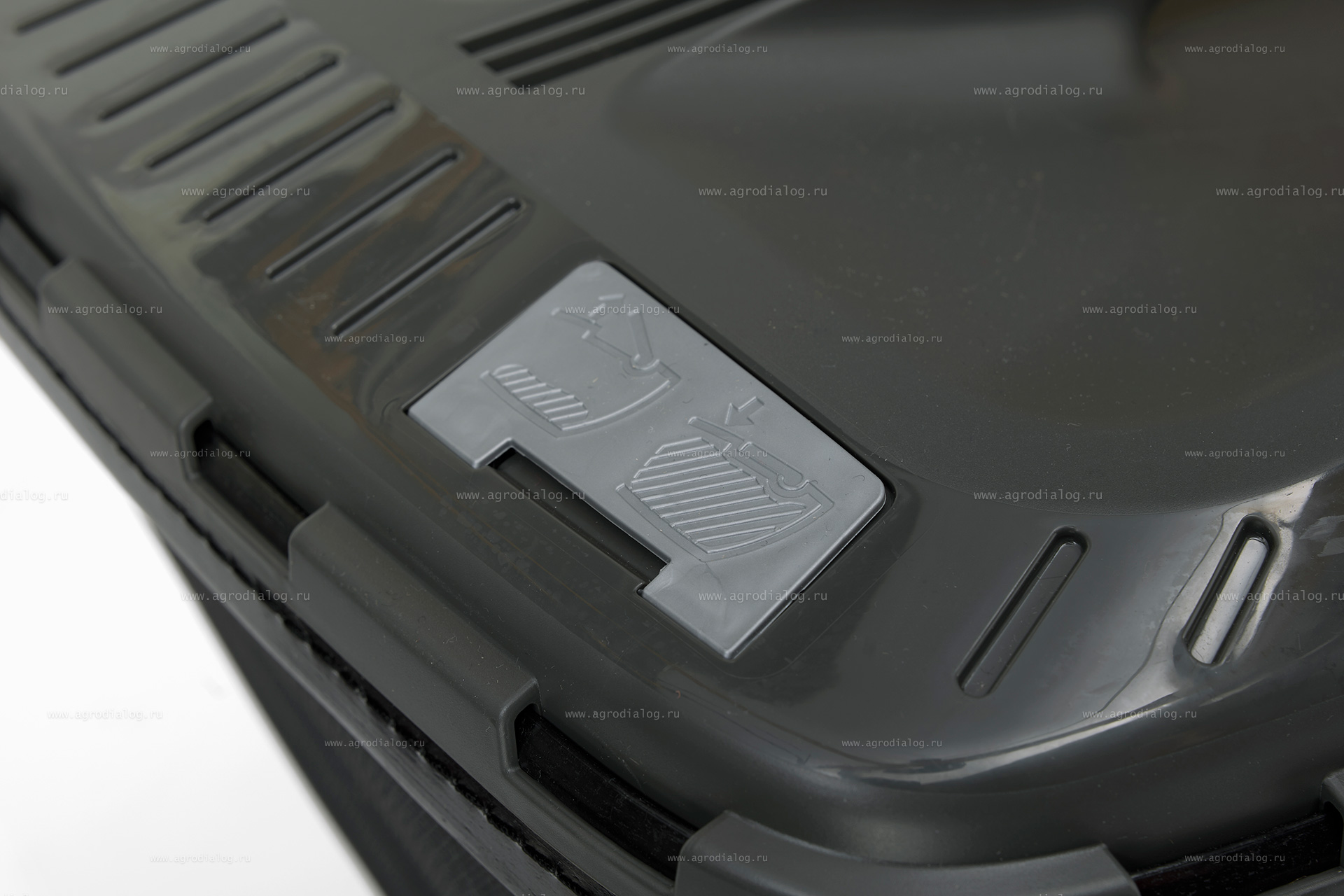 - Сбор травы в травосборник придает газону законченный и чистый вид, тканый материал, применяемый при его изготовлении, надежно удерживает пыль и пыльцу растений, благодаря чему люди, страдающие аллергией, могут работать в свое удовольствие. Индикатор заполнения травосборника подскажет о необходимости его опустошения.
