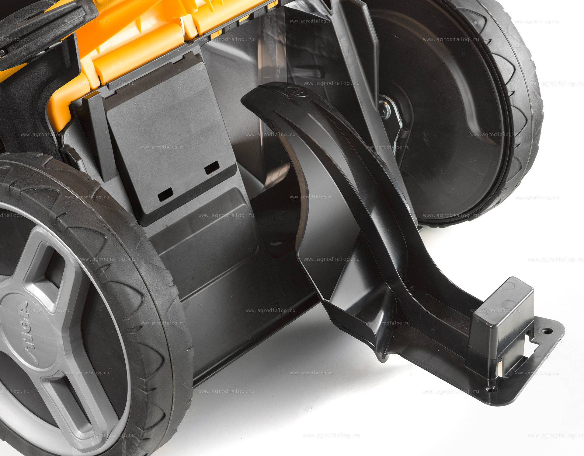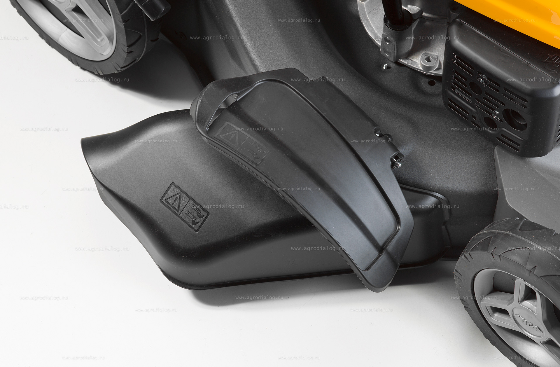 - Четыре режима кошения позволяют выбрать необходимый вариант в зависимости от ваших потребностей: сбор травы в травосборник, мульчирование, боковой и задний выброс.