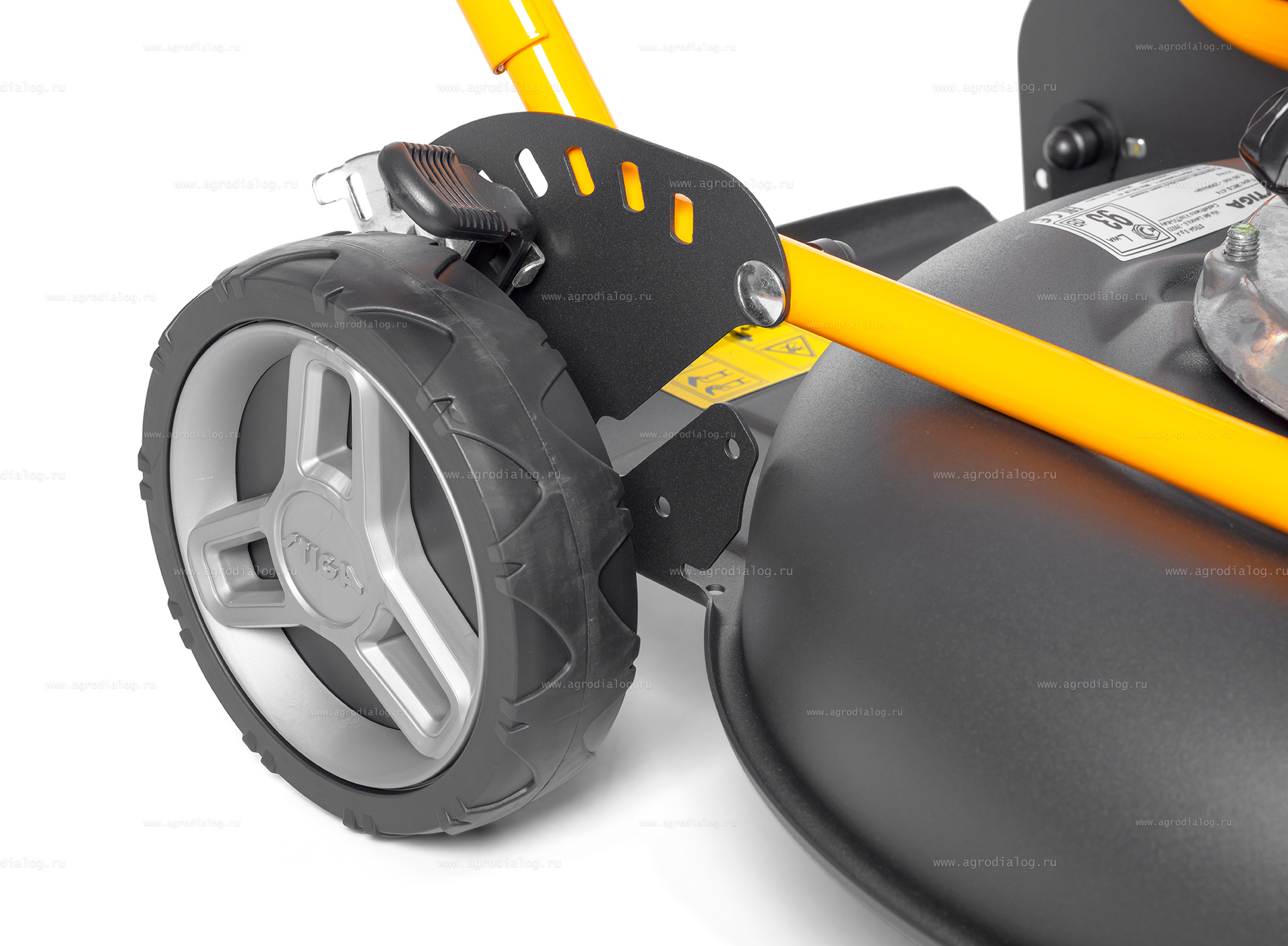 - Регулировка высоты скашивания независима для каждого колеса и устанавливается в одно из 5 стандартных положений в диапазоне от 31 до 80 миллиметров.