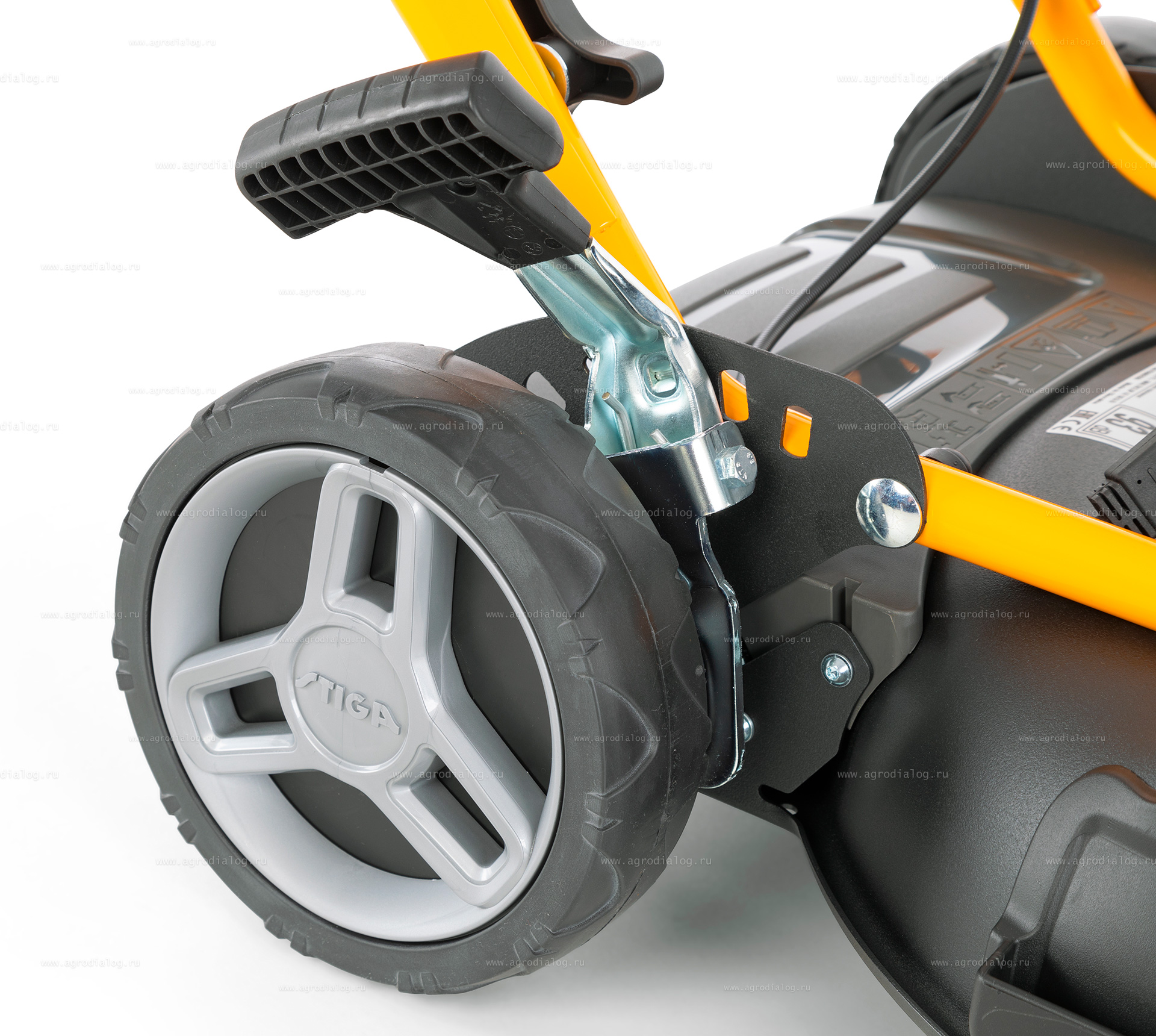 - Быстрая и легкая регулировка высоты стрижки травы. Одна легкодоступная эргономичная ручка позволяет регулировать высоту всей режущей деки и заменяет собой индивидуальные рычаги для каждой оси или каждого колеса. Предусмотрена возможность выбора из 5 значений высоты в диапазоне от 31 до 80 мм.