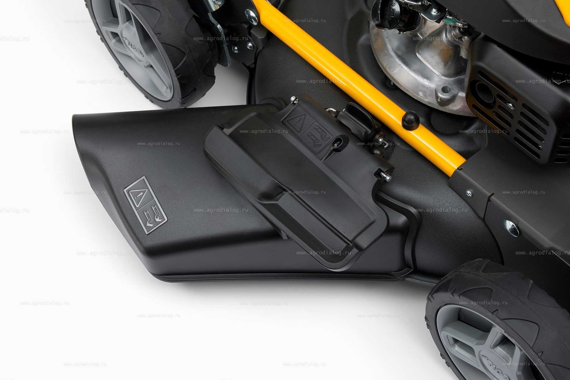 - Выброс травы в сторону удобен при скашивании высокой травы.