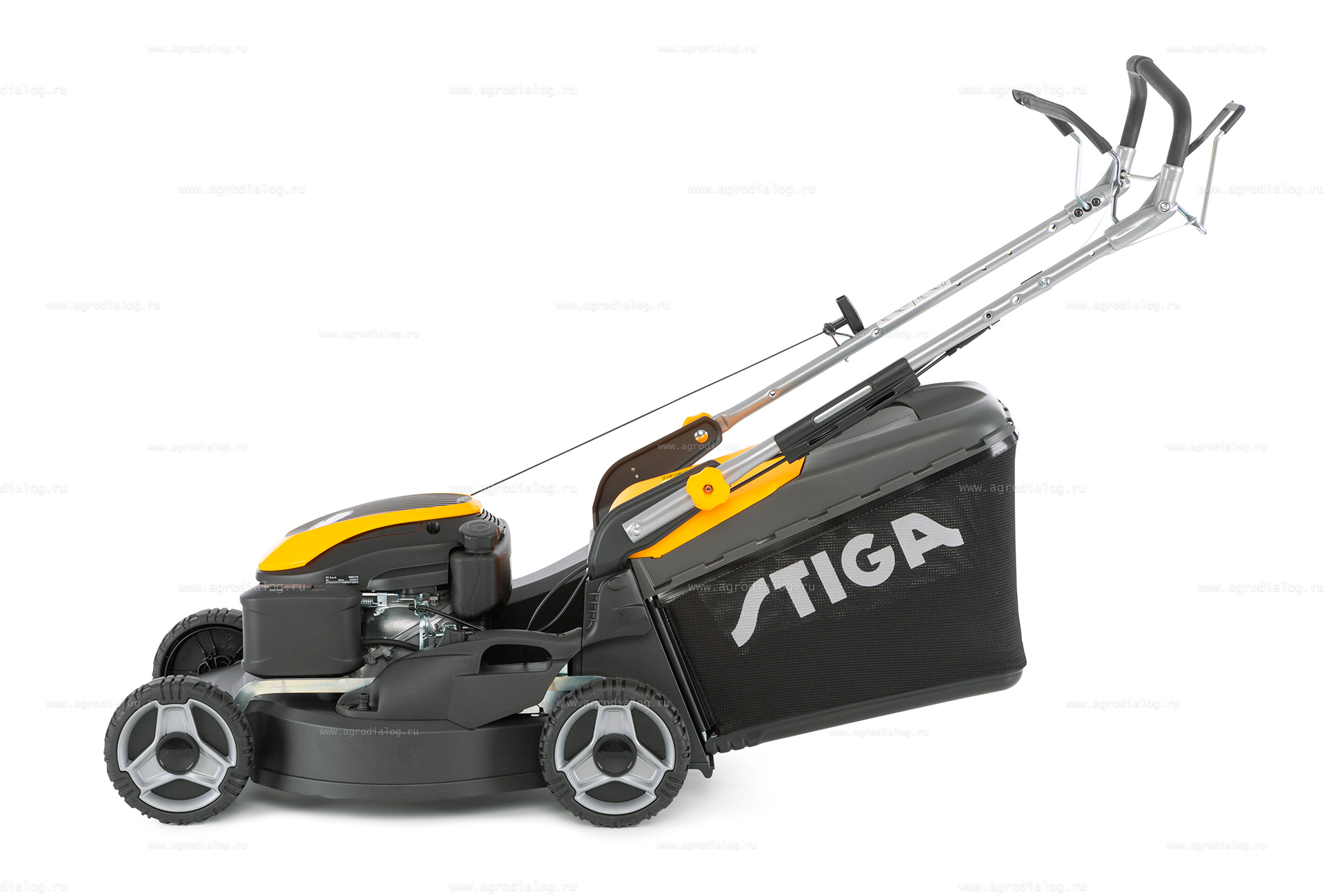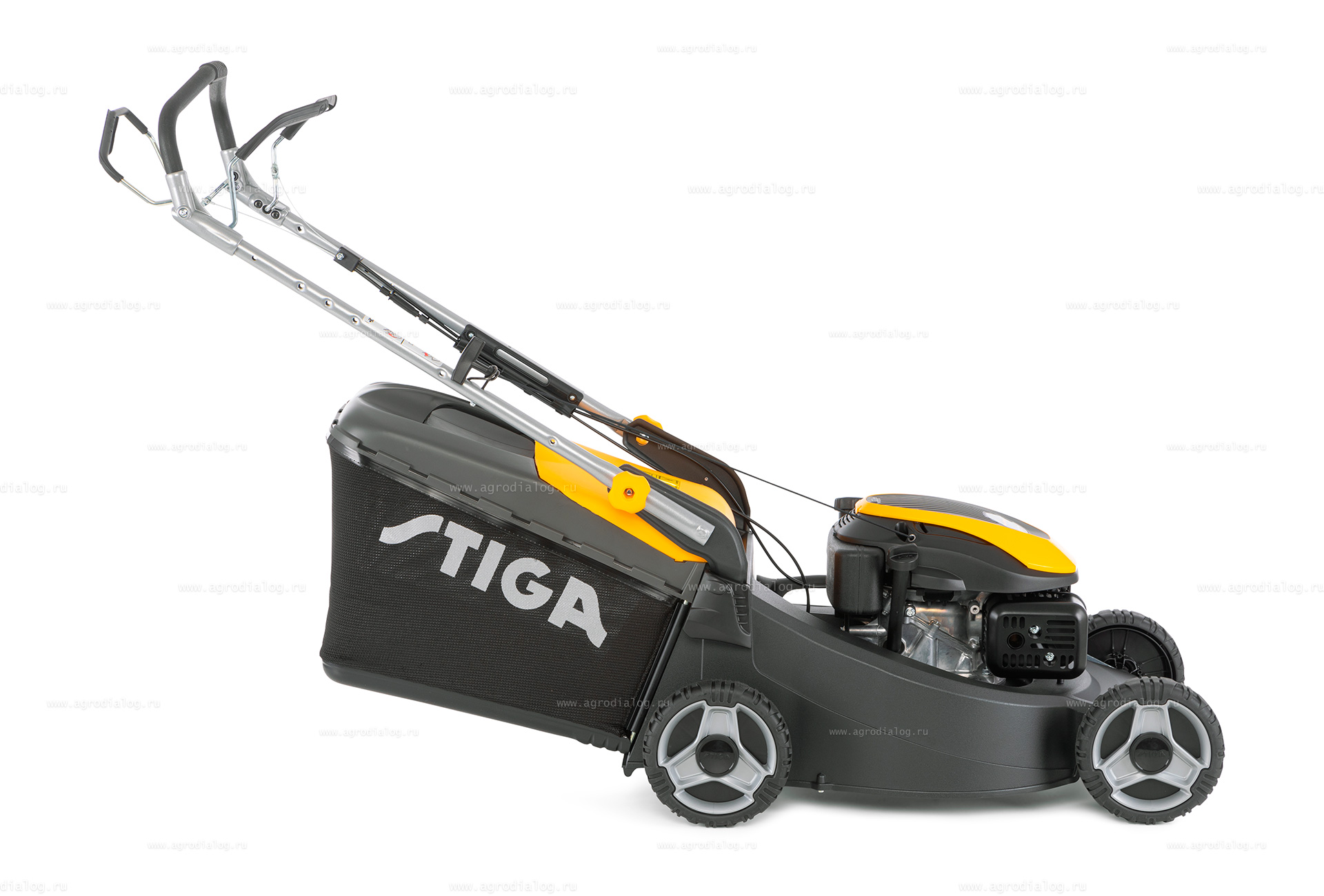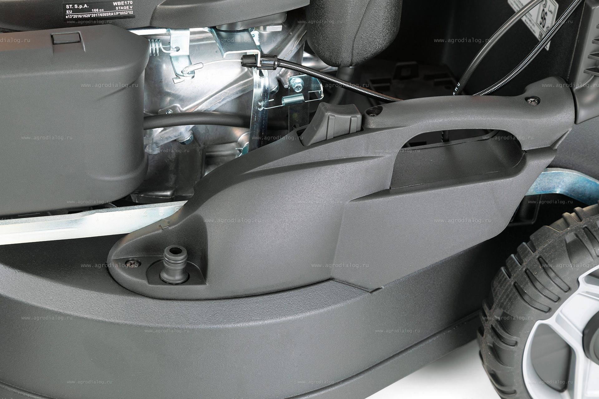 - Большие задние колеса облегчают маневрирование на участках со сложным рельефом.