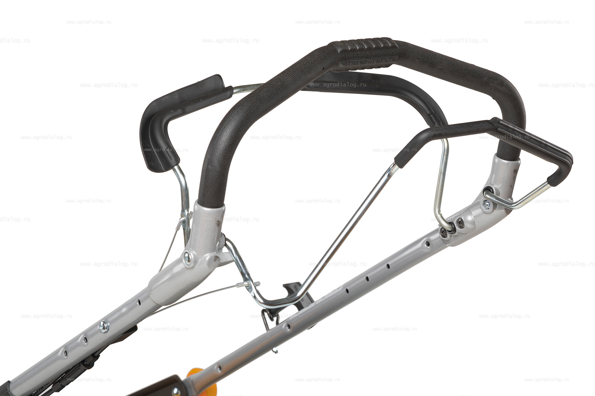 - Эргономичная рукоятка управления с мягким покрытием обеспечивает пониженную вибрацию и минимальное напряжение рук в ходе работы. Возможность регулировки по высоте позволяет подобрать наиболее удобное положение людям разного роста. Складывается для удобной транспортировки и хранения.
