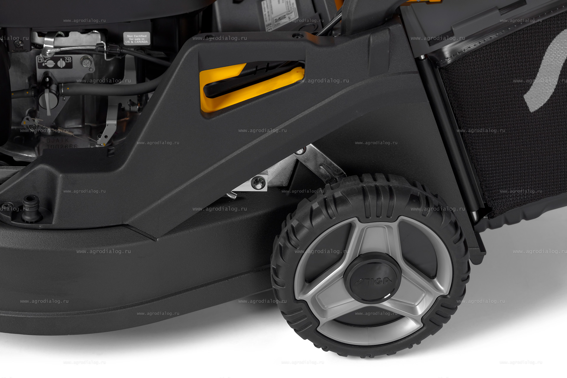 - Большие задние колеса облегчают маневрирование на участках со сложным рельефом.