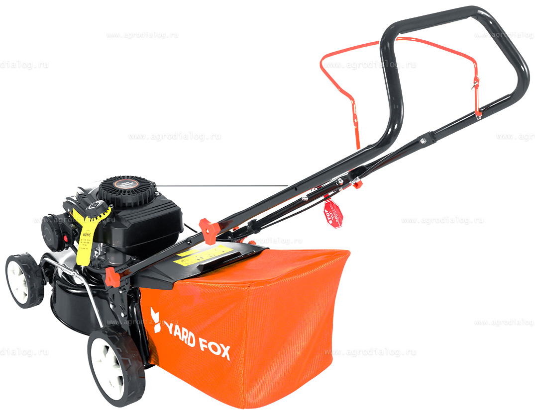 - Бензиновая газонокосилка YARD FOX 40P оснащена косильным ножом повышенной прочности, со специально подобранным углом атаки режущей кромки.