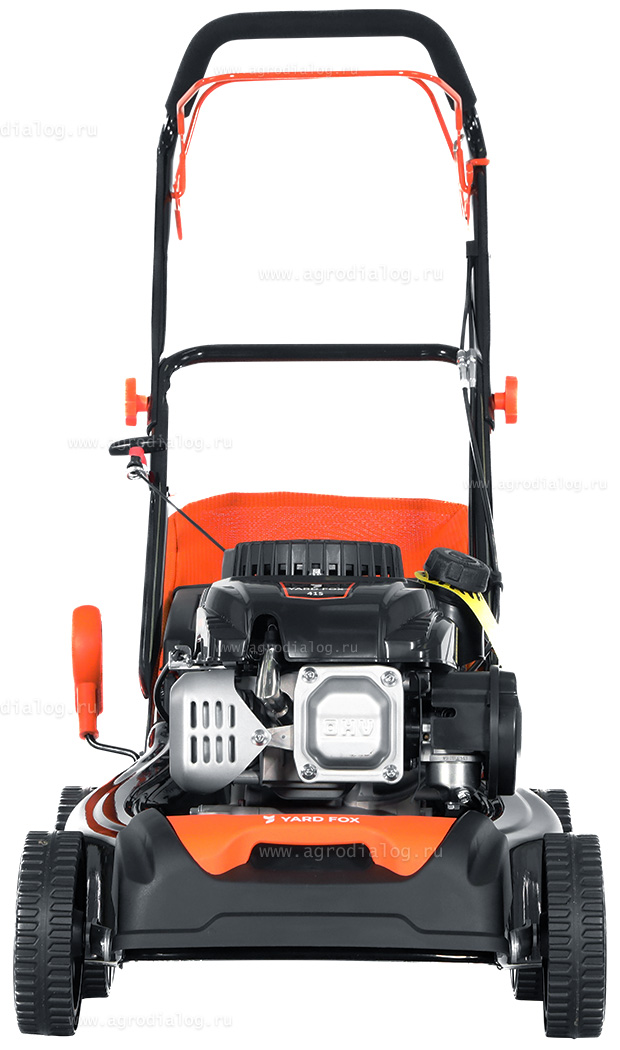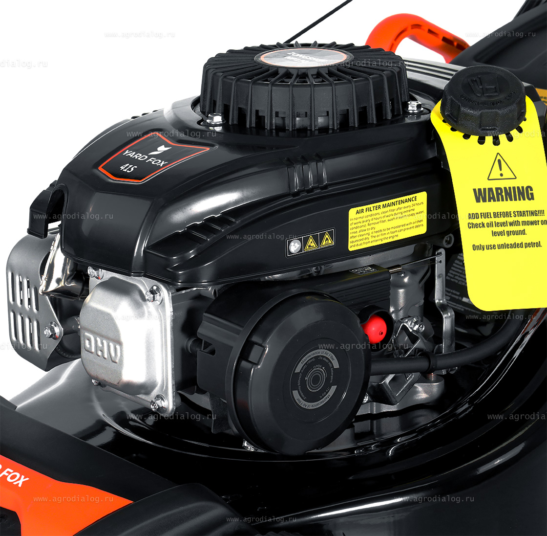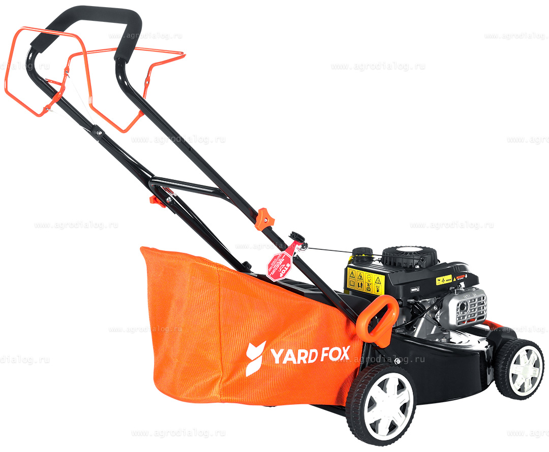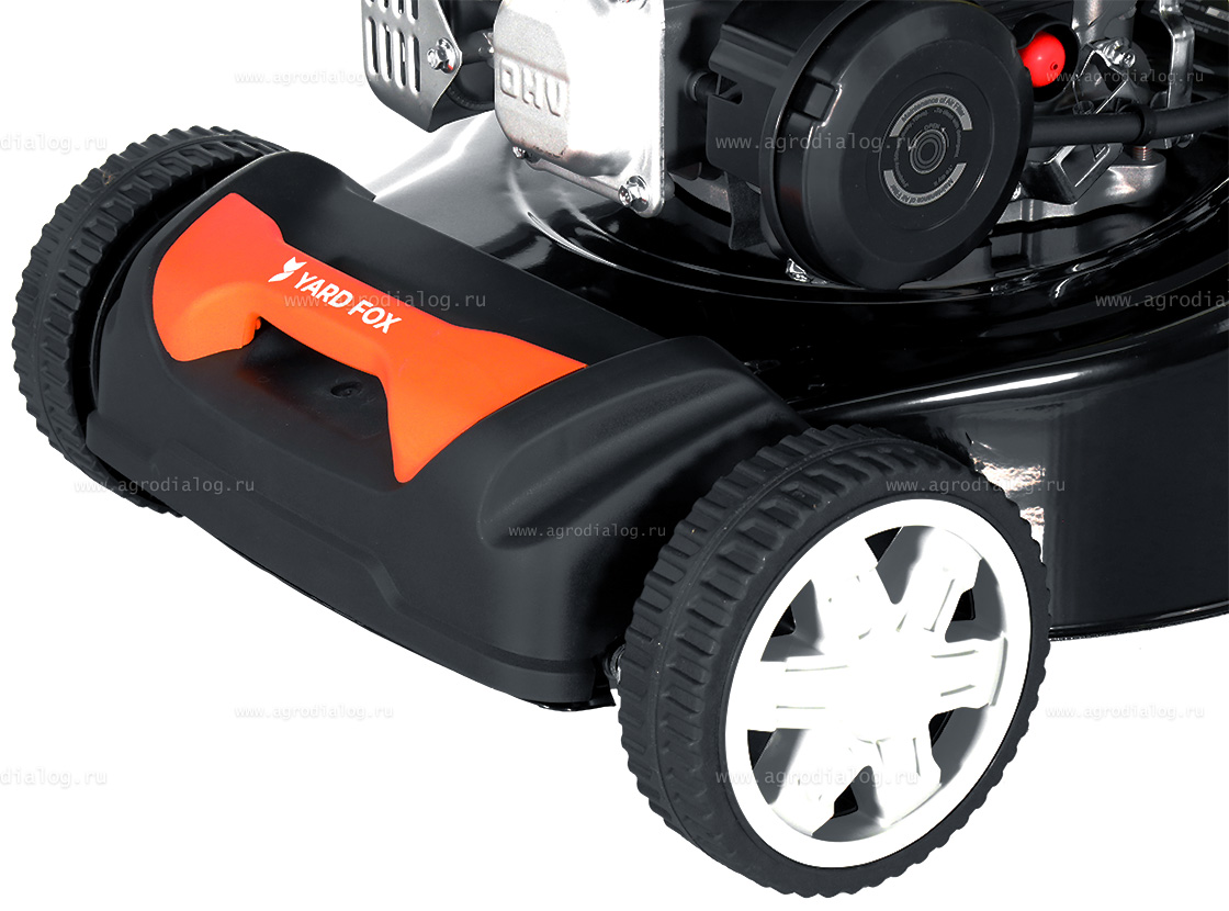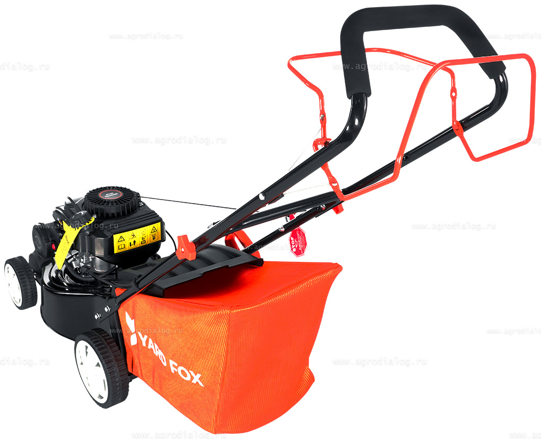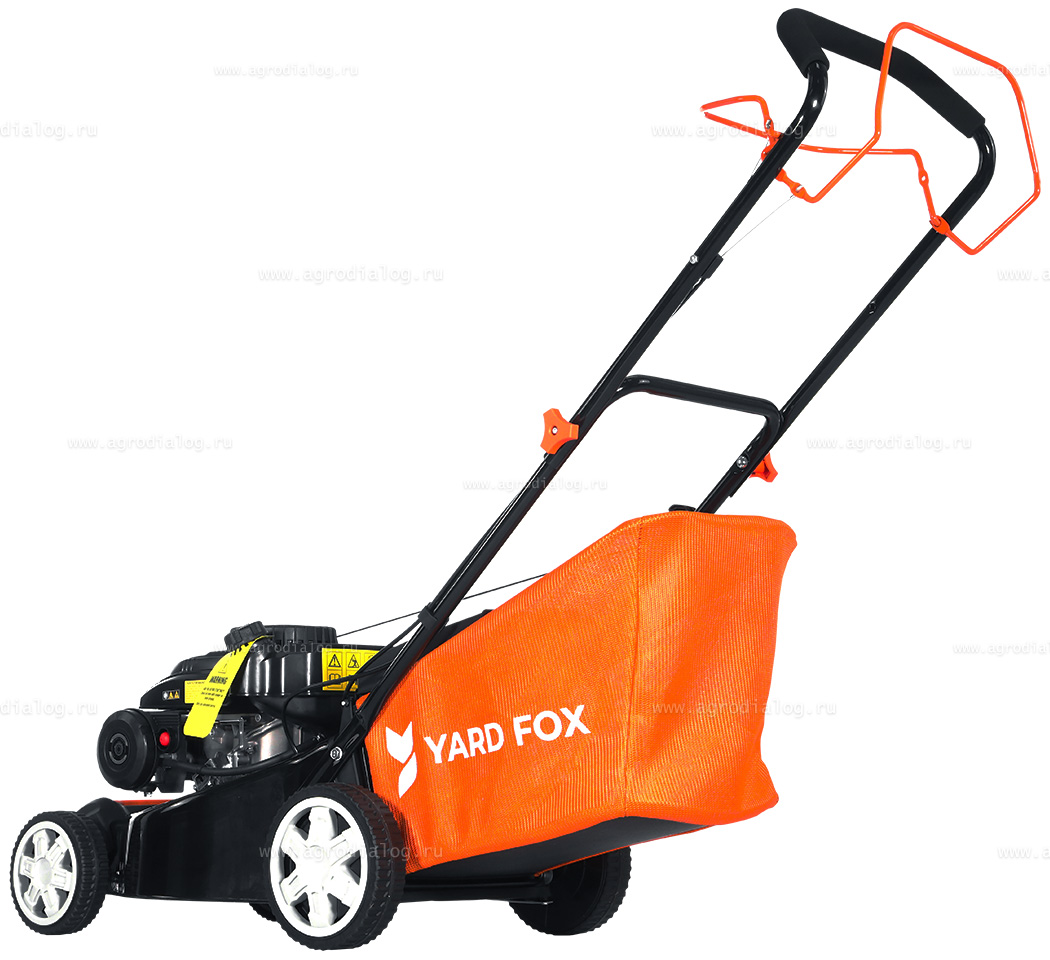 - Бензиновая газонокосилка YARD F0X 41S оснащена косильным ножом повышенной прочности, со специально подобранным углом атаки режущей кромки.