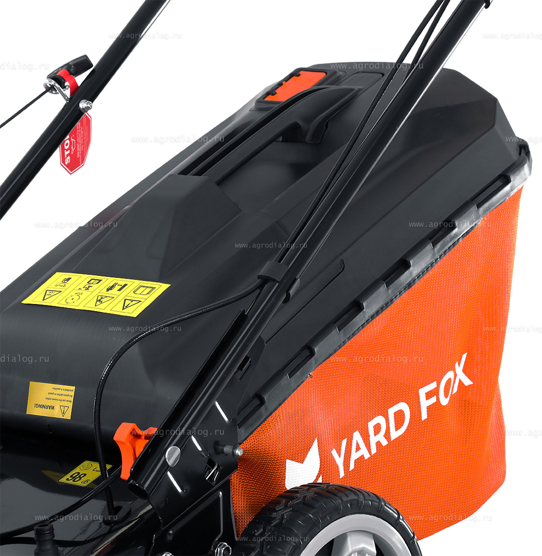 - Бензиновая газонокосилка YARD FOX 51S оснащена косильным ножом повышенной прочности, со специально подобранным углом атаки режущей кромки.