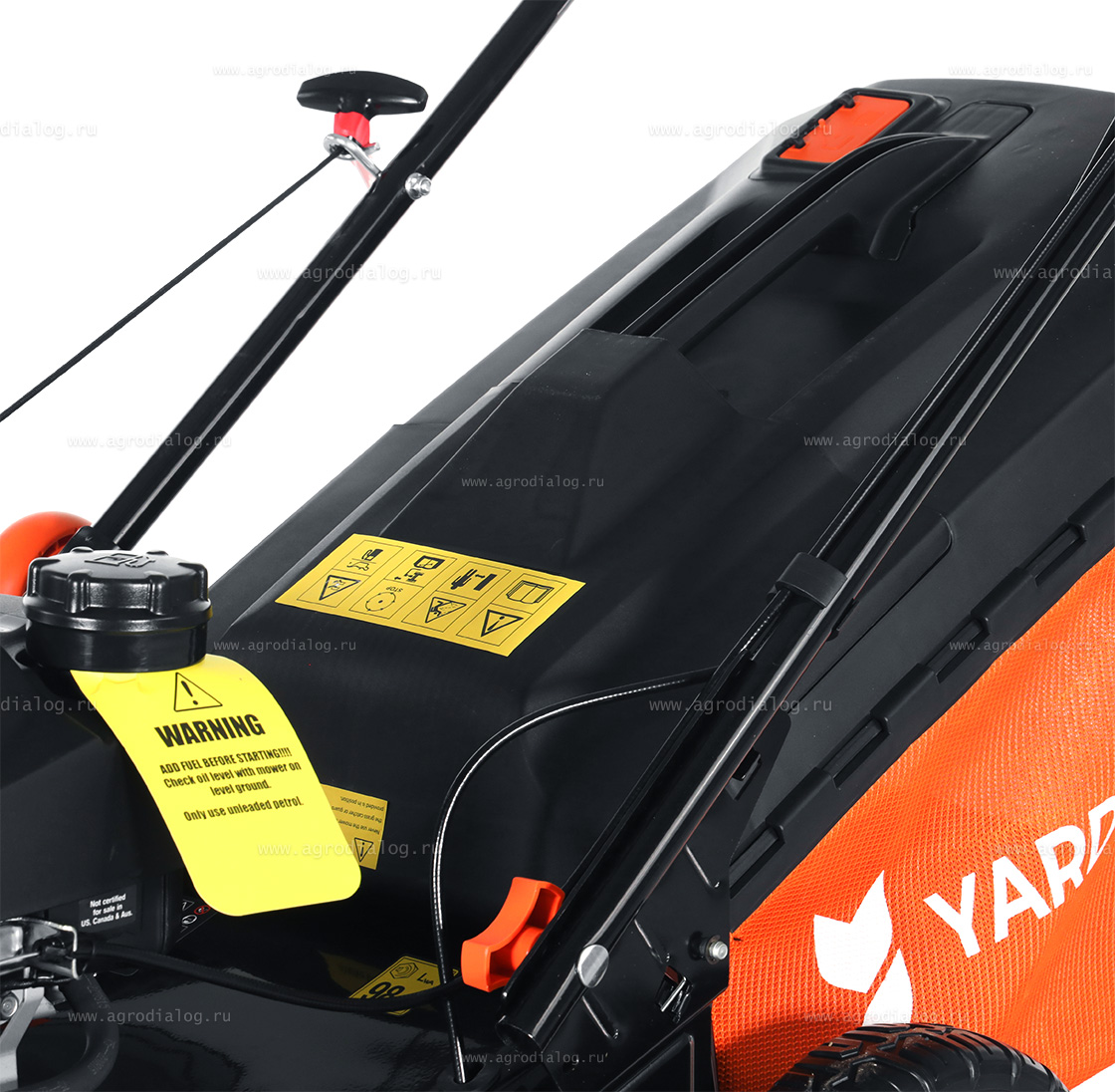 - Бензиновая газонокосилка YARD FOX 51SH оснащена косильным ножом повышенной прочности, со специально подобранным углом атаки режущей кромки.