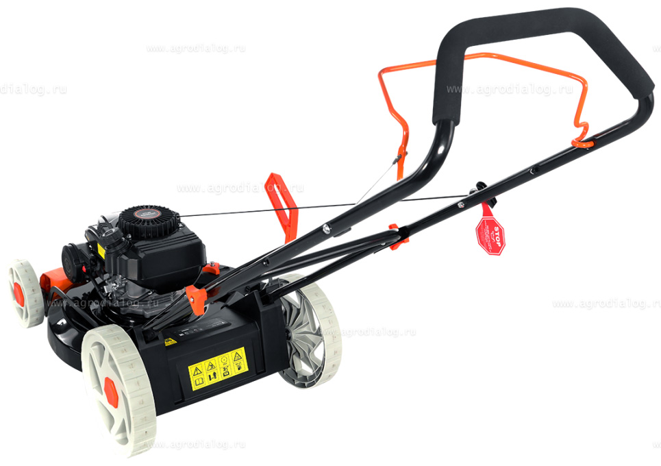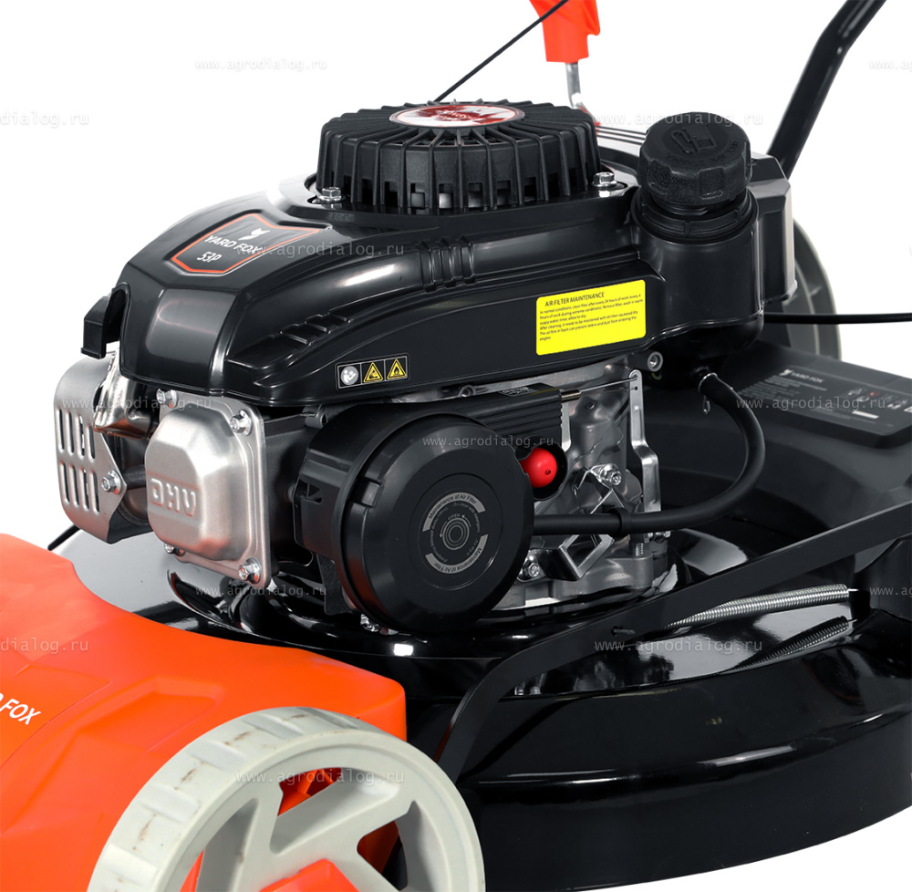 - Бензиновая газонокосилка YARD FOX 53P оснащена косильным ножом повышенной прочности, со специально подобранным углом атаки режущей кромки.