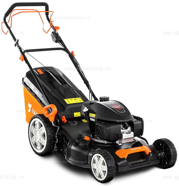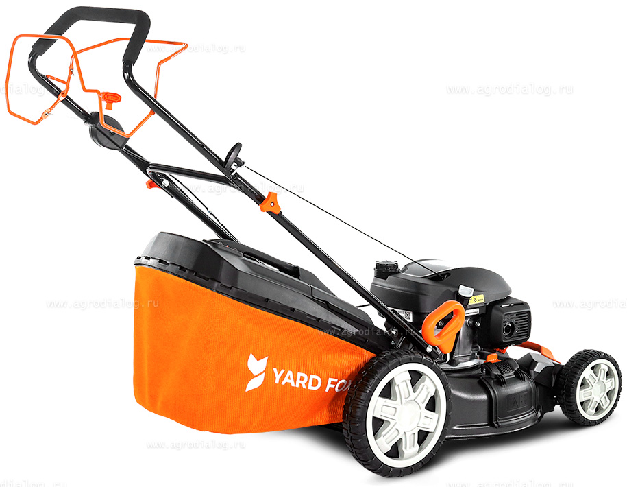 - Бензиновая газонокосилка YARD FOX 53SH V оснащена косильным ножом повышенной прочности, со специально подобранным углом атаки режущей кромки.
