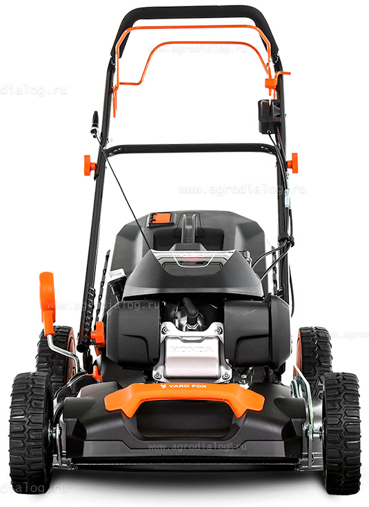 - Бензиновая газонокосилка YARD FOX 53SH V обладает привлекательным дизайном и простотой использования, что делает её идеальным помощником в саду.