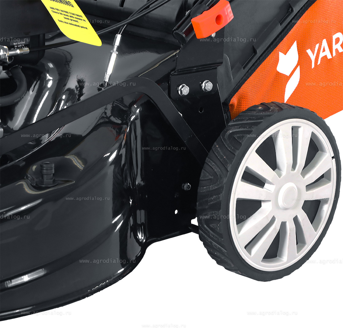 - Бензиновая газонокосилка YARD FOX 55SH HW оснащена косильным ножом повышенной прочности, со специально подобранным углом атаки режущей кромки.