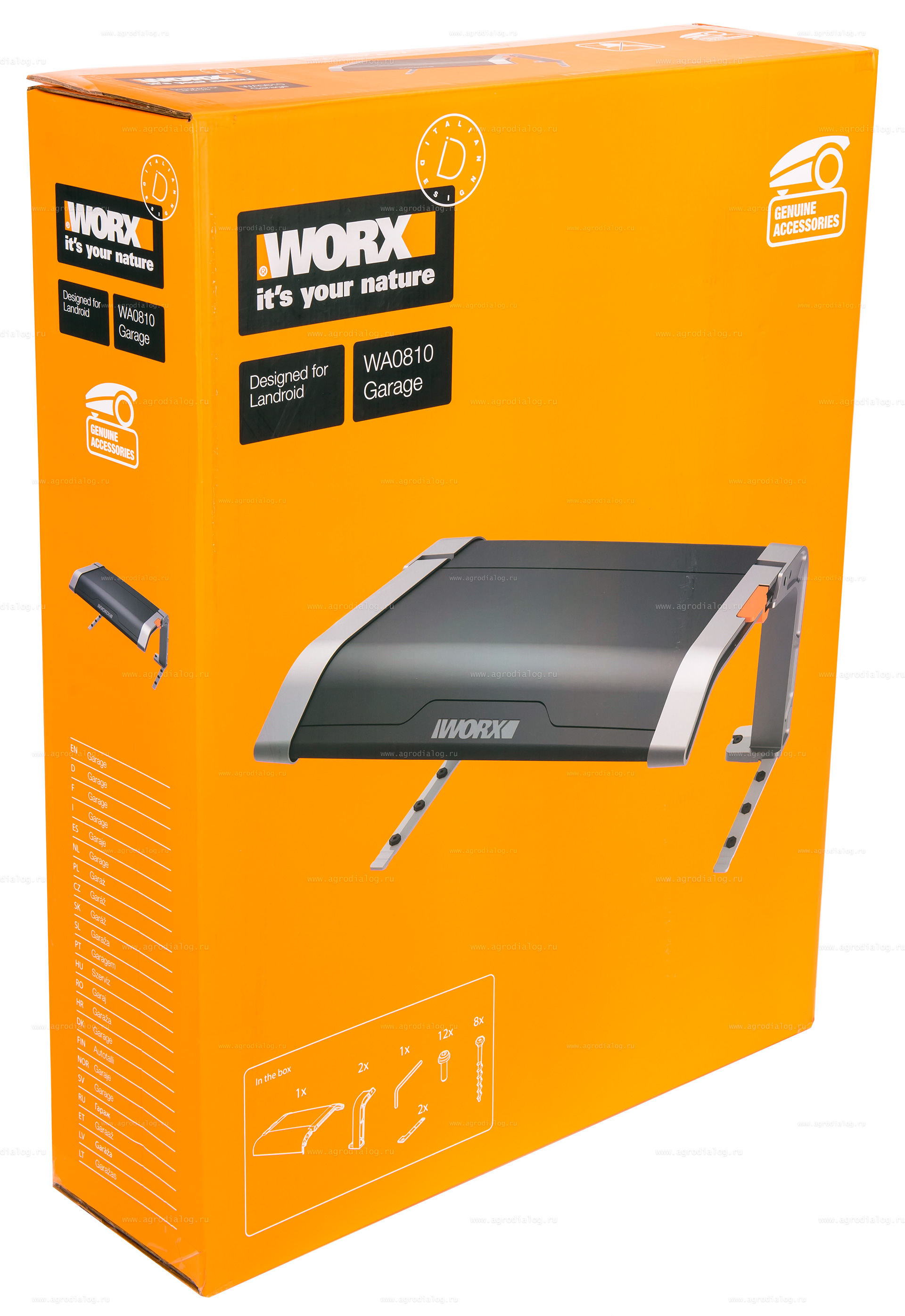 Гараж Worx WA0810 обеспечивает дополнительную защиту роботов газонокосилок Landroid от дождя и прямых солнечных лучей. Гараж просто прикручивается к док-станции и совместим со всеми современными моделями газонокосилок Landroid. Данный товар приобретается только в комплекте с роботом-газонокосилкой.