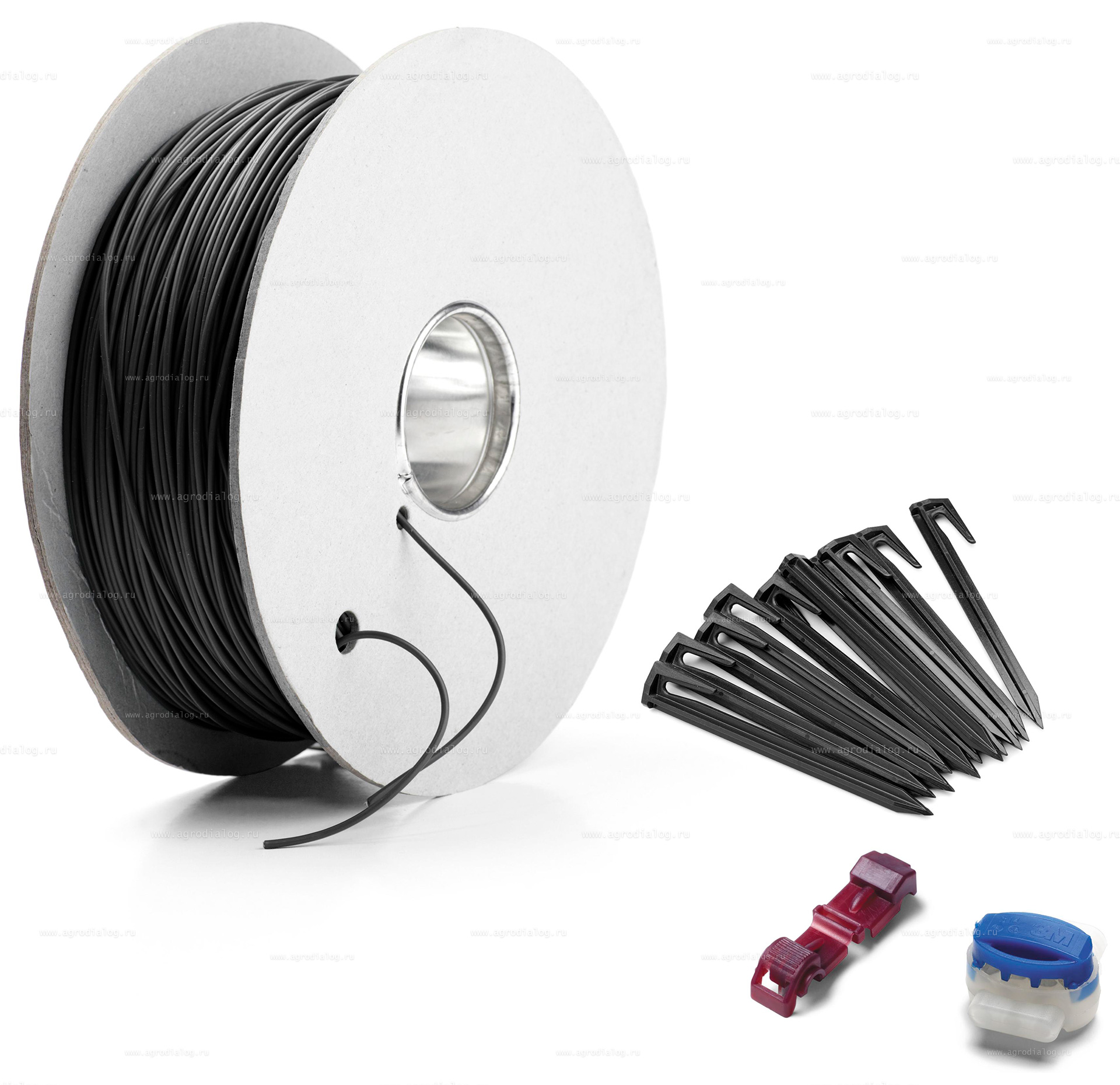 В комплект для установки газонокосилки-робота Husqvarna "Large" 9679723-01 входит: устойчивый к ультрафиолетовому излучению ограничительный провод диаметром 2.7 мм (400 метров), фиксаторы для крепления провода к земле (600 штук), 5 зажимных клемм для крепления провода к зарядной станции, 5 соединителей для наращивания ограничительного провода. Комплект 9679723-01 рекомендован для открытой площади до 5 000 м2 и комплексной площади огражденного газона до 2 500 м2.