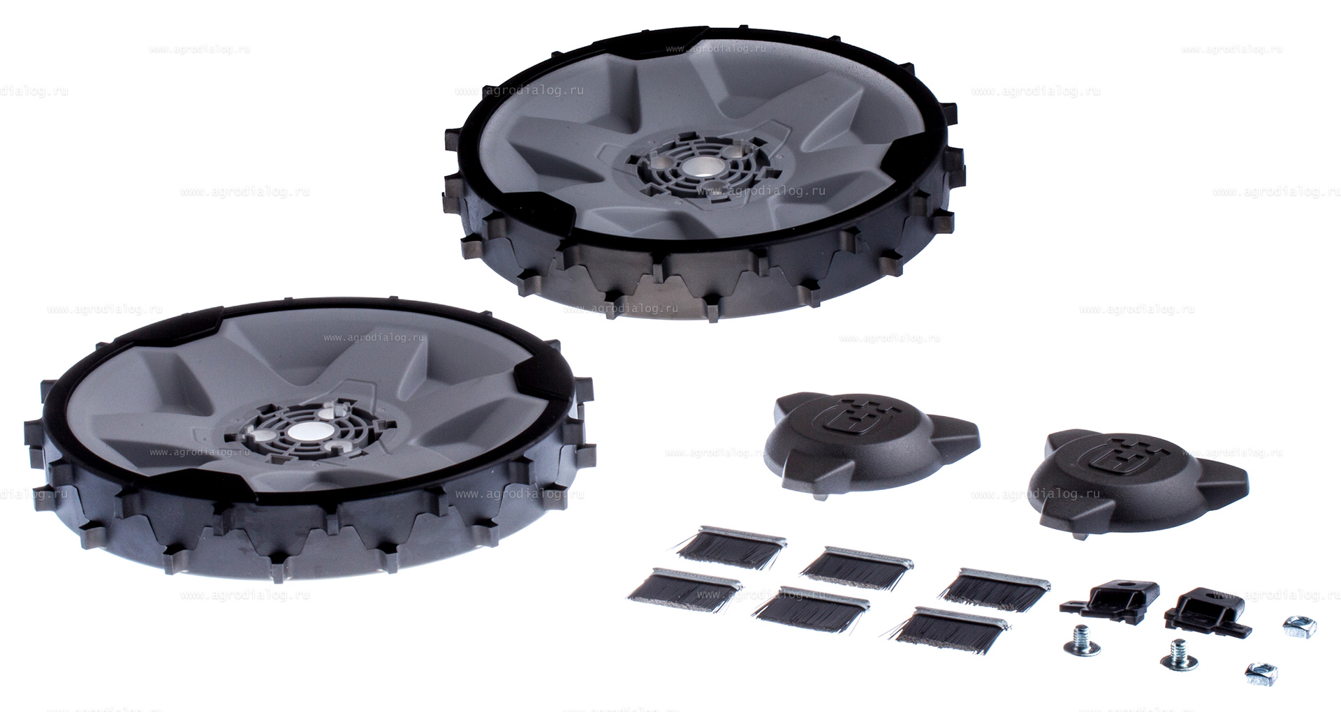 Комплект Husqvarna 5872353-01, содержащий задние колеса с утяжелением и колесные щетки для отличного сцепления на газонах с уклонами и возвышенностями. В зависимости от погоды и качества газона производительность кошения на склонах и по краям участка может вырасти до 5%. Данный товар приобретается только в комплекте с роботом-газонокосилкой.