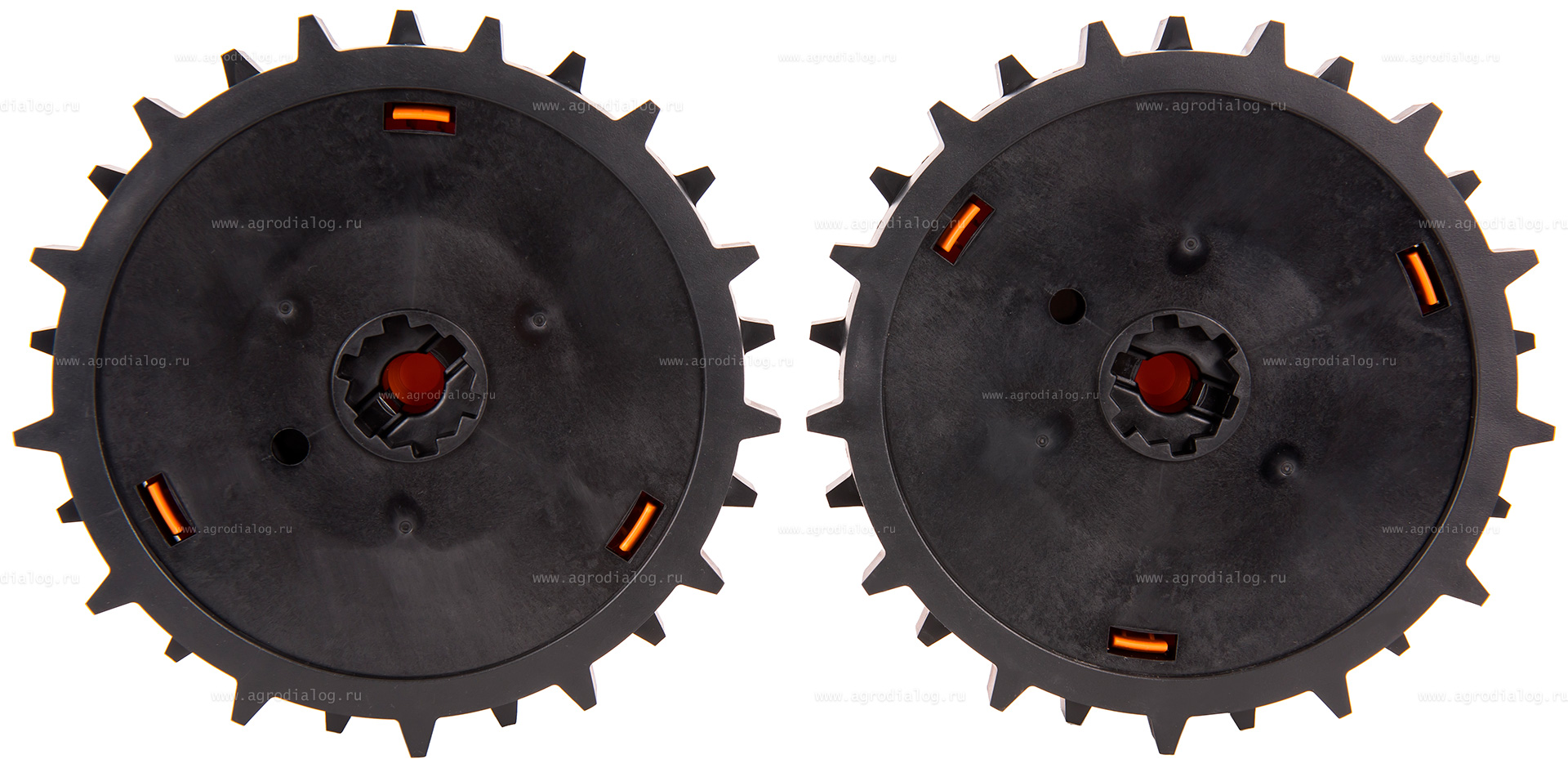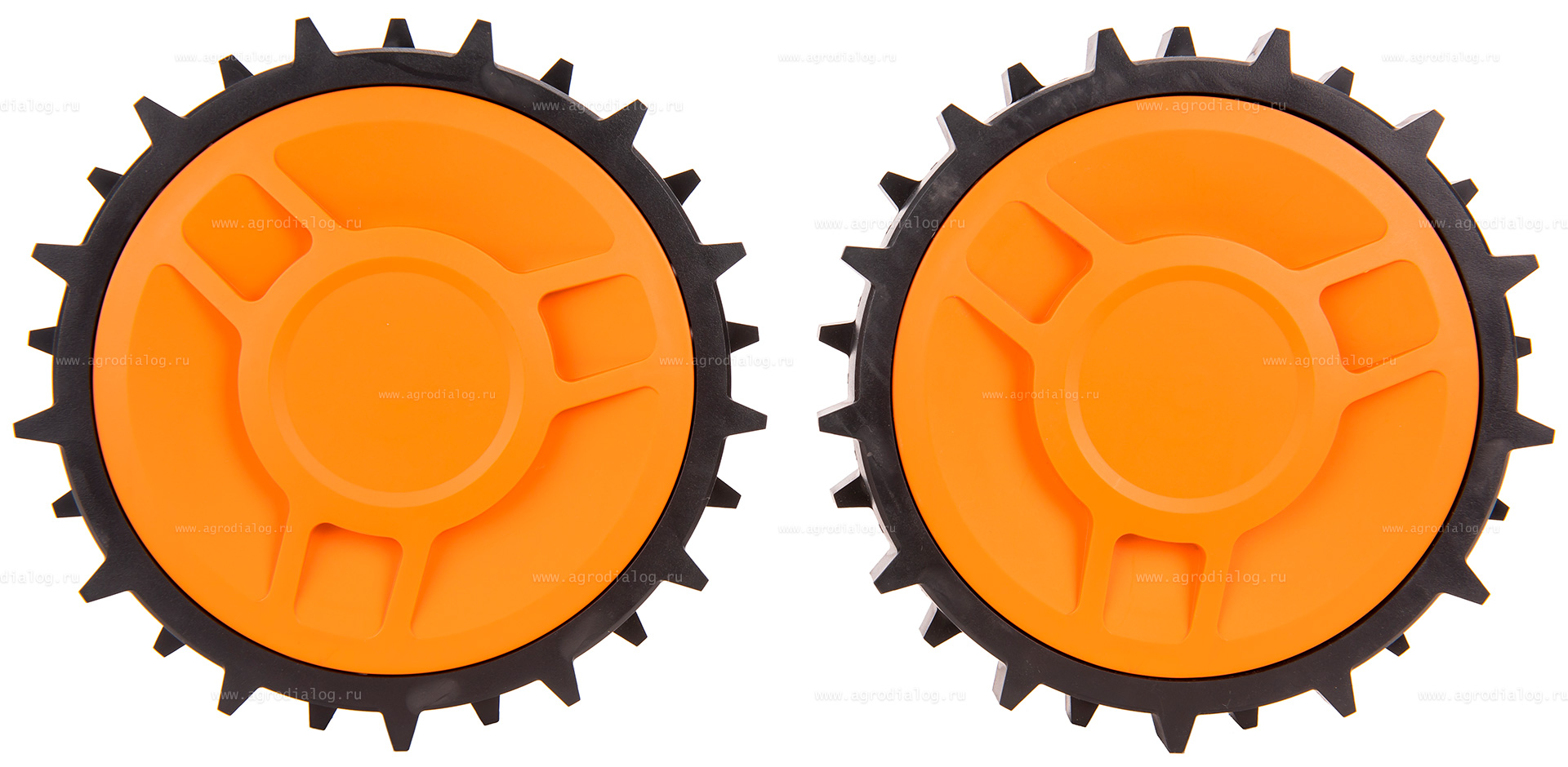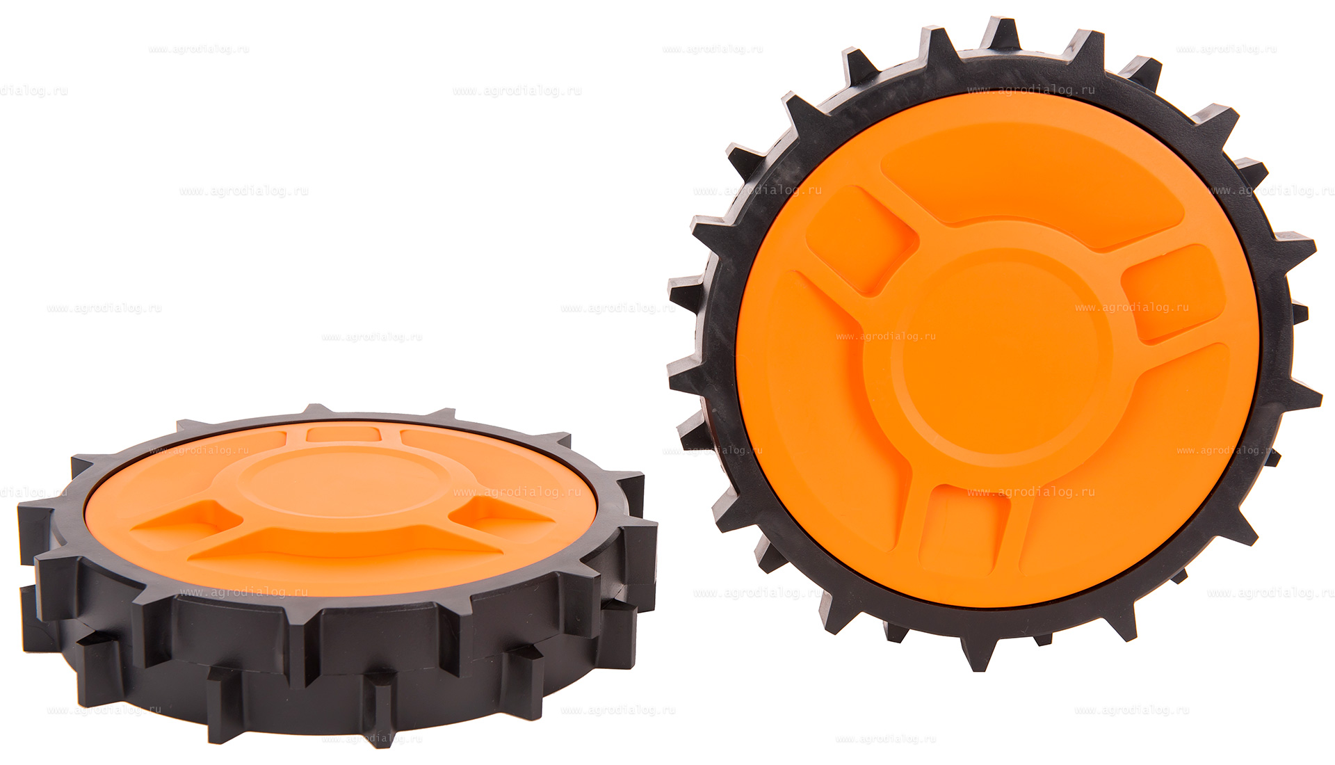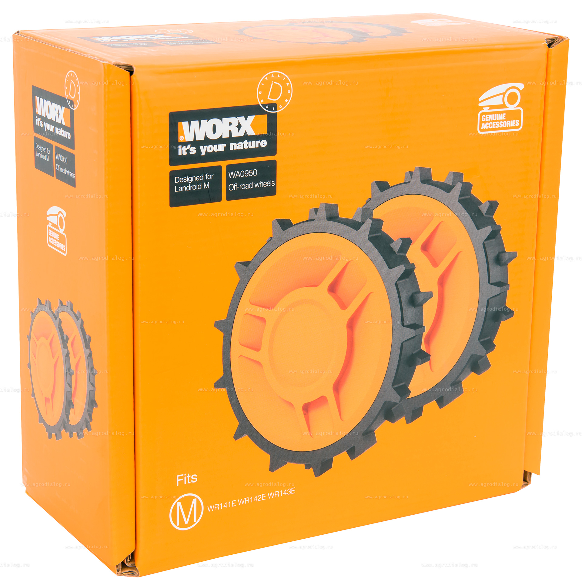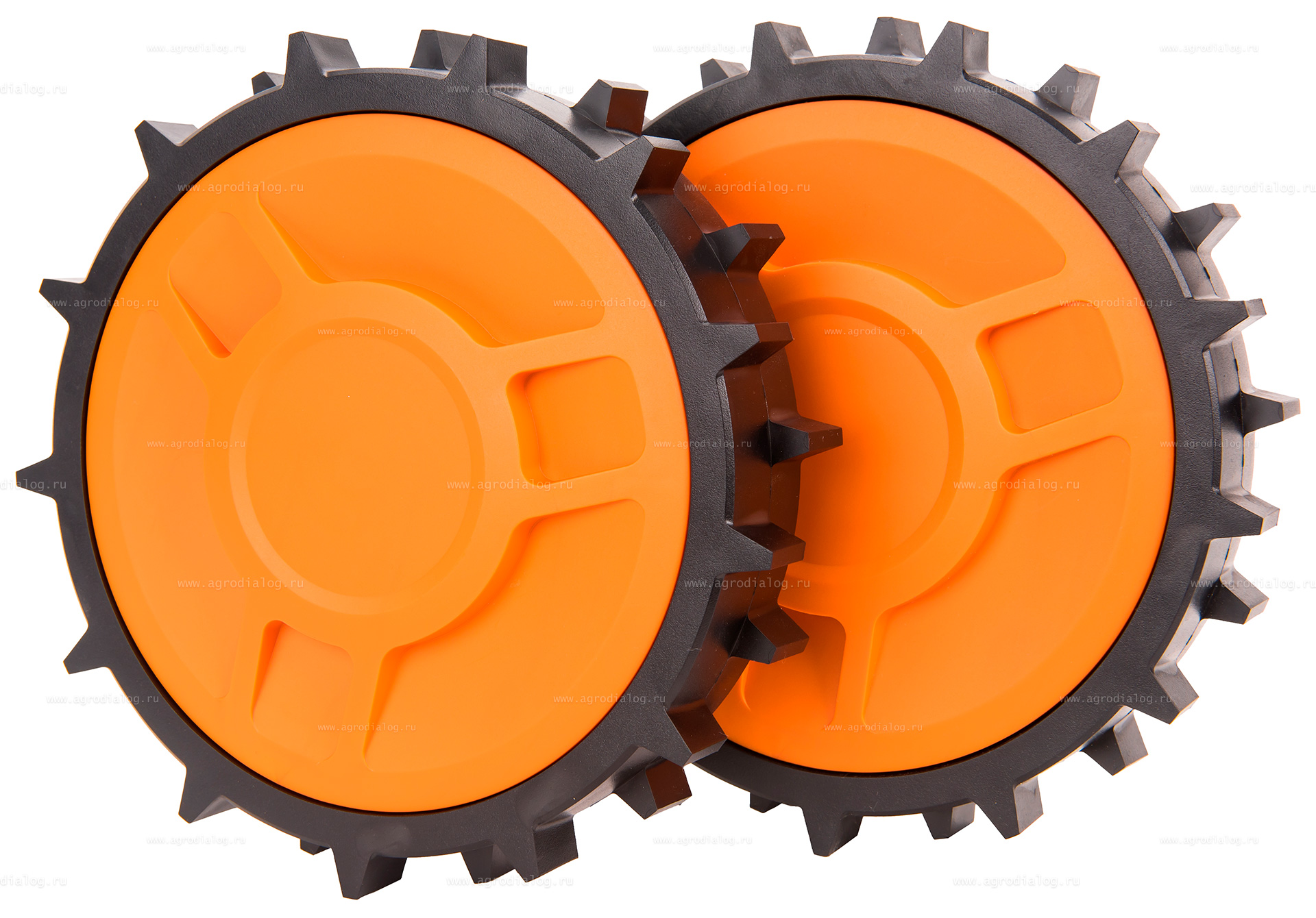 Комплект Worx WA0950, содержащий специальные колеса "Внедорожник" для отличного сцепления на газонах с уклонами до 24°. В зависимости от погоды и качества газона производительность кошения на склонах и по краям участка может вырасти до 5%. Данный товар приобретается только в комплекте с роботом-газонокосилкой.