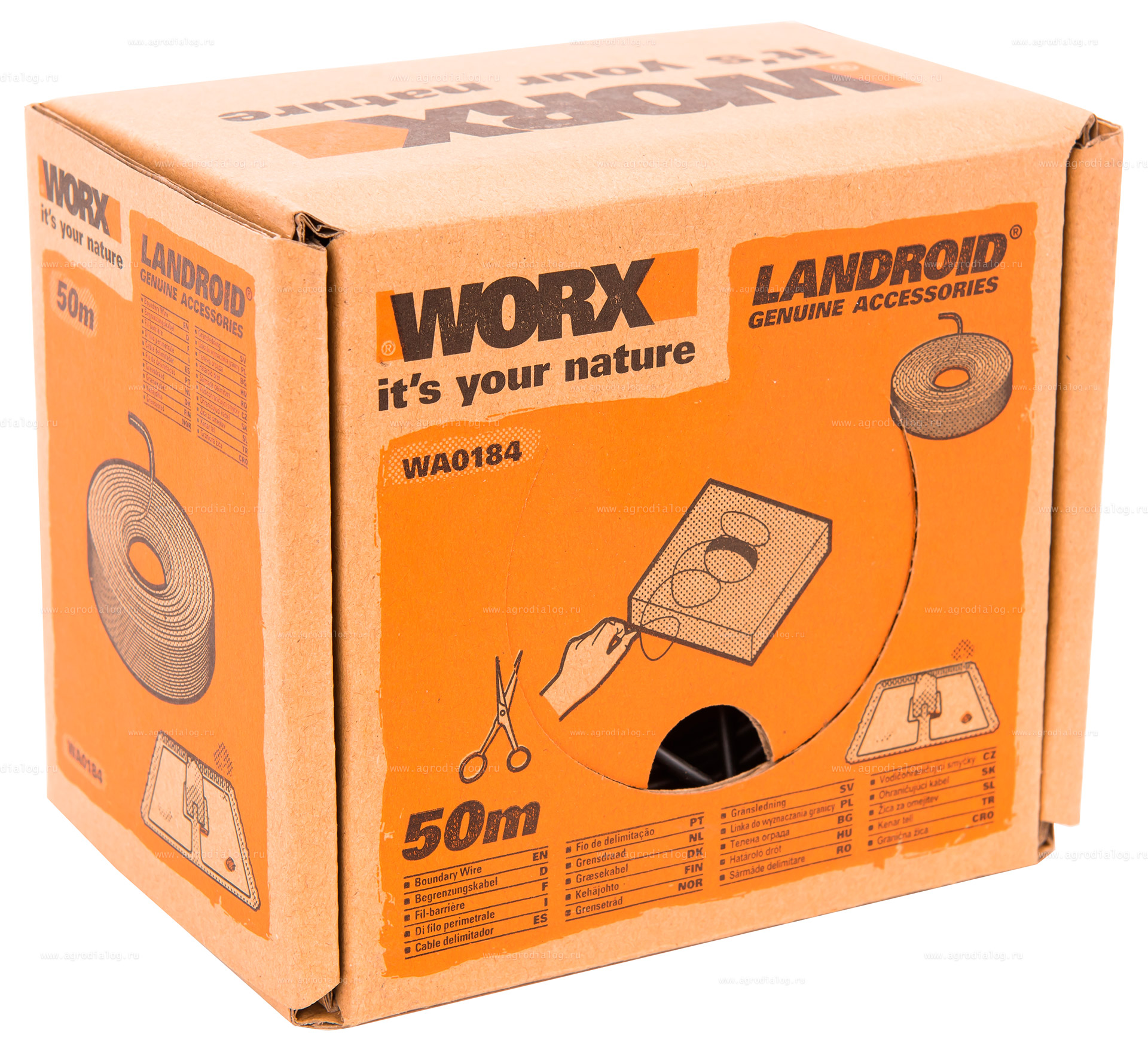 Ограничительный провод Worx WA0184 позволяет обозначить рабочую область роботизированной газонокосилки Landroid. Длина 50 метров. Данный товар приобретается только в комплекте с роботом-газонокосилкой.