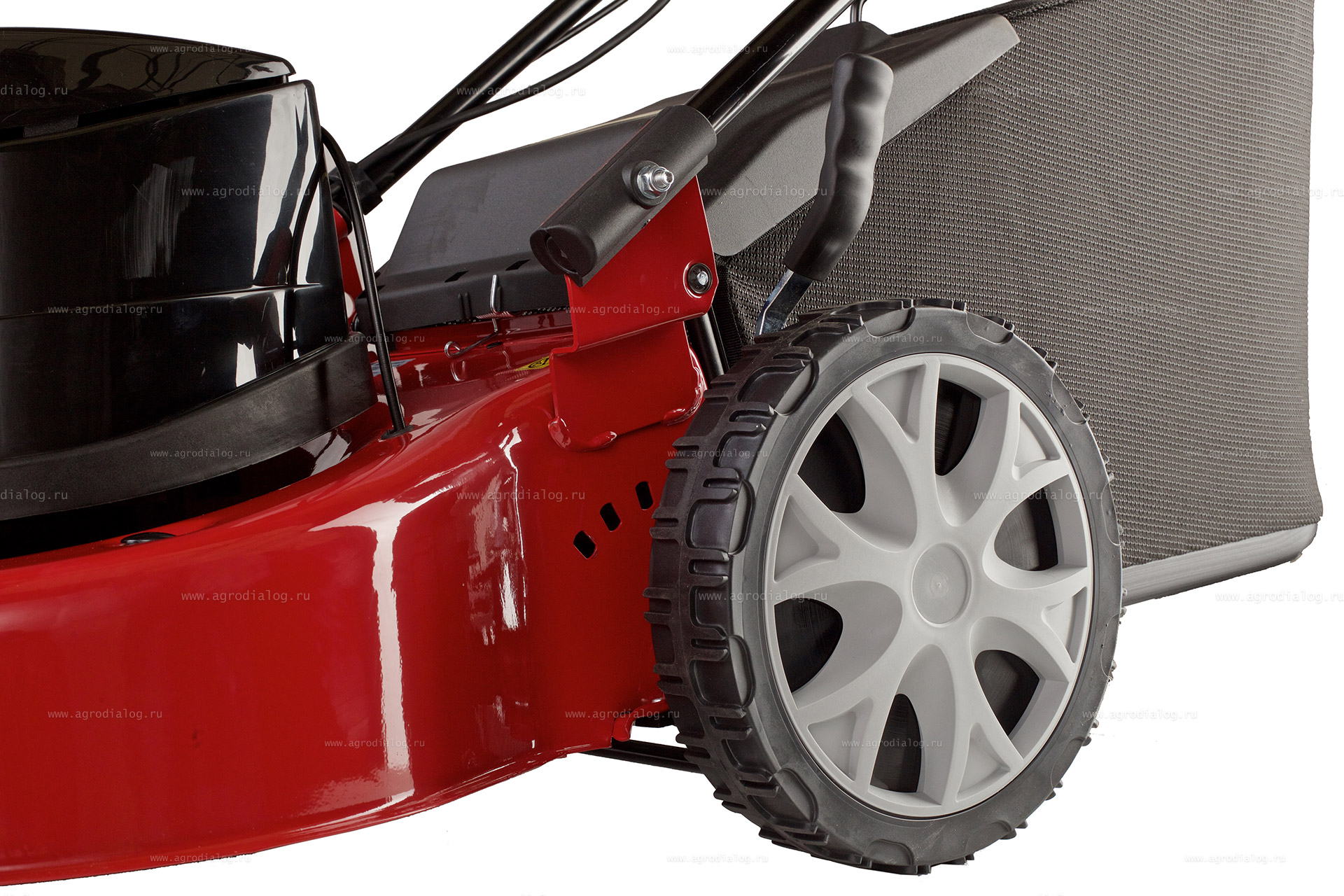 - Задний привод обеспечивает отличное сцепление с газонным покрытием на неровной и холмистой местности.