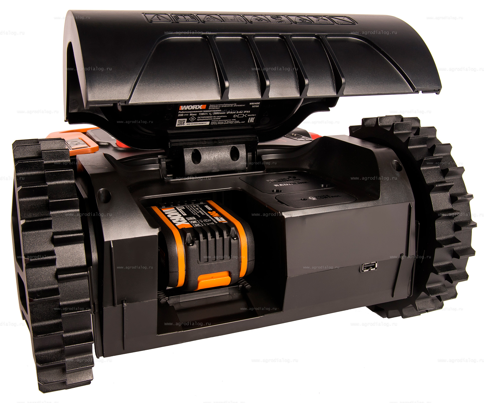 - Робот-газонокосилка Worx Landroid M WR143E оборудована датчиком дождя, который определяет, что пошел дождь, и подает сигнал косилке прекратить скашивание и вернуться на зарядную станцию.